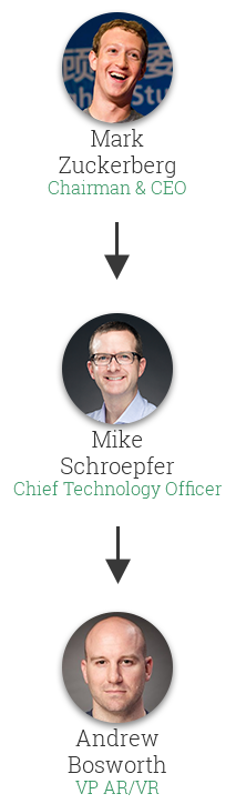 Underneath Mark Zuckerberg and Facebook CTO Mike Schroepfer is VP of VR/AR Andrew “Boz” Bosworth, the Facebook executive formerly in charge of ads.