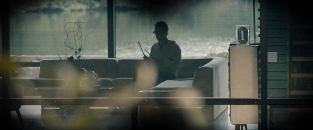 The movie is largely unconcerned with the prospect of VR, but there are a fleeting few seconds in which it does address the topic. Frank, an aging burglar, is surveying a house belonging to Jake, a young, successful developer that has embraced the technologies of the near-future. Jake is essentially the living embodiment of the so-called millennial, grown up and living in a brave new world. Through a pair of binoculars, Frank finds him sitting alone in a room with what’s presumably a VR or AR headset on, drumming away. Our protagonist disapprovingly chuckles and proclaims “Unbelievable!” as Jake quickly tucks the device away when a girl walks into the room, suggesting some form of embarrassment.