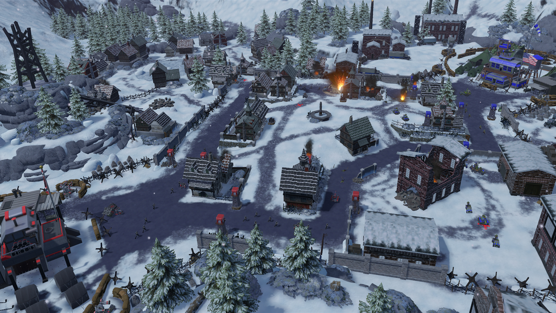 In fact, the whole thing feels like a wonderland of destruction. If you play against a particularly smart opponent, whether online or via one of the single player modes, you’ll quickly find how addictive it is to watch your own choices play out in real time. When you set the graphic scale to ‘Medium’ or ‘Large’, you’ll find yourself treated to dogfights where the planes skirt past one another and zip over your shoulders, intense armor battles that shake the ground around you, and a complete 360-degree view over the entire horizon. Of course, you can always scale down to the ‘Small’ graphics mode, which gives you a top-down look over the entire battlefield, allowing you to make precise strategic decisions like establishing artillery in a remote location or moving troop transports up the lanes.