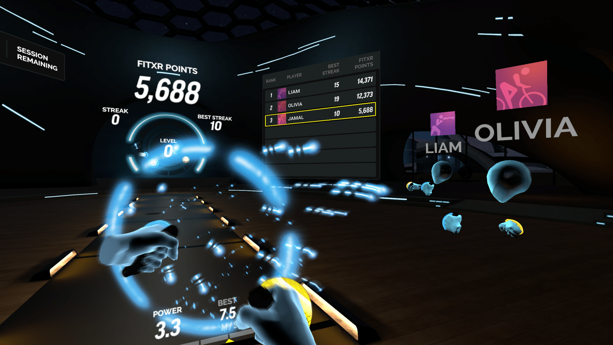 But the biggest upgrade here, at least in my mind, is what appears to be a slight tweak to one of the tougher elements of BoxVR. Along with your standard jab and cross hits, you also perform side-jabs and uppercuts. In the previous version of the game, these could be incredibly challenging to pull off accurately and, while mastering them provided some depth, missing these notes when you were sure you were pulling off the correct technique could be hugely demoralizing — not what you need in the middle of a workout. It might be the new visual style or tweaked mechanics, but this seems to be much less of an issue in FitXR. You’ll still need to plan ahead to make sure you’re hitting notes on time, but you shouldn’t be missing stray hooks and uppercuts anymore.