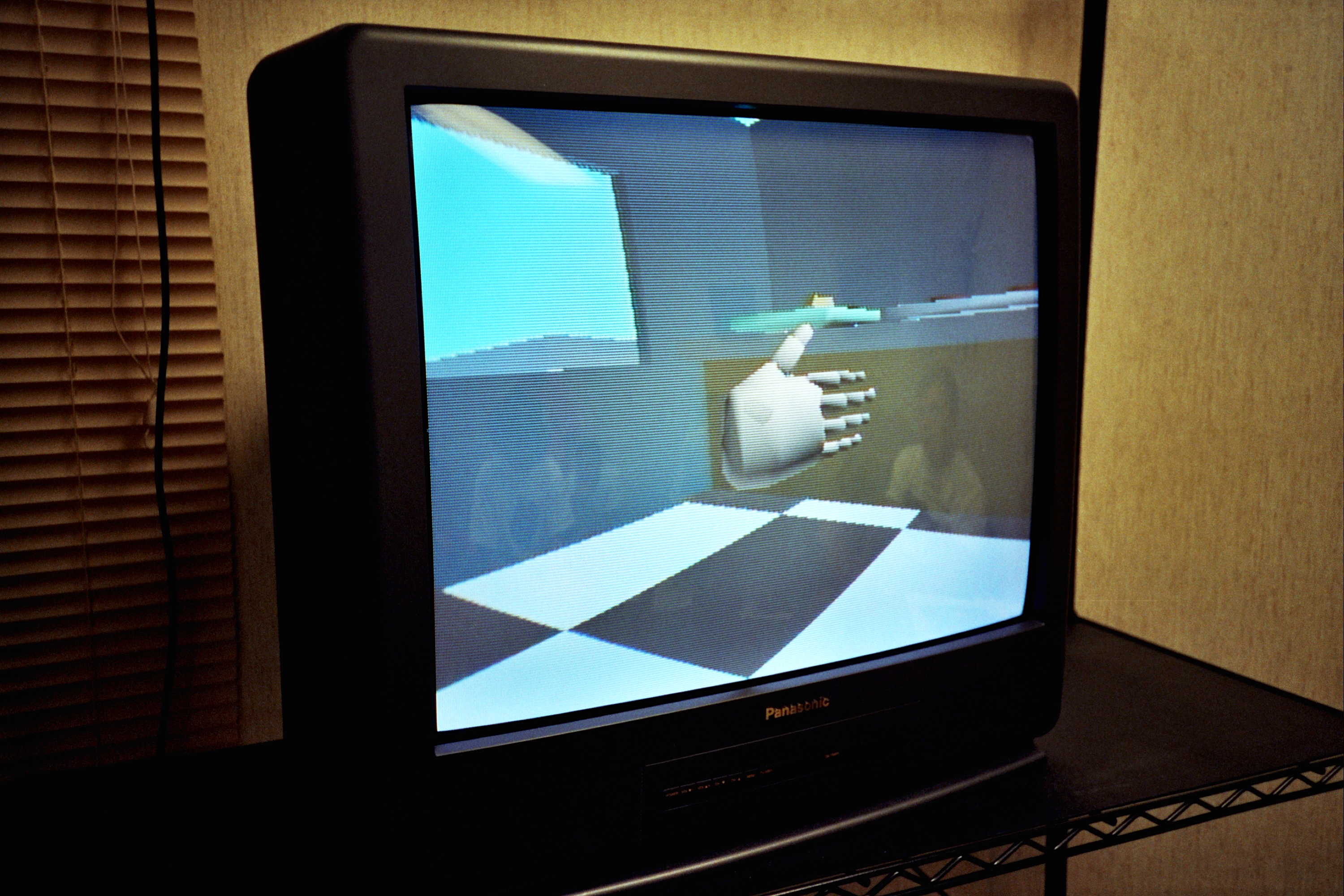 Some things were very much like today, but others couldn’t be more different. The big, black, immersive headset wasn’t all that different from, say, a DK2, at least at first glance. Plus, there was an external input device (in the form of hand-tracking glove).