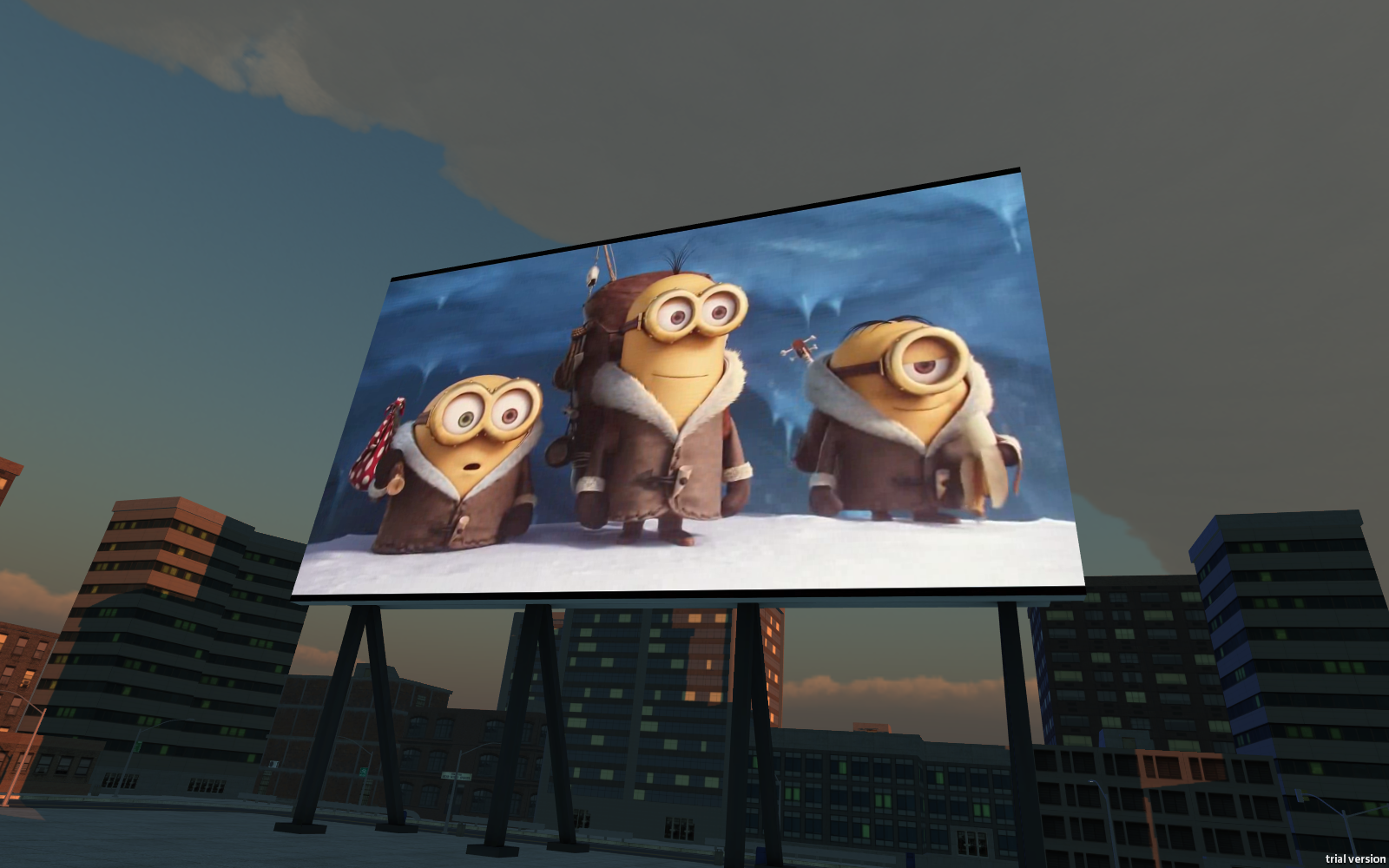Soon after, I saw an outdoor movie screen, playing a trailer for Minions, the next movie in the Despicable Me series. In the mobile version of our demo, we would spawn the trailer full screen after the user clicked on the movie theater. In the virtual reality version of the demo, the trailer just played as I approached. But the amazing thing was that the screen was 100 feet tall! I couldn’t take my eyes off of it.