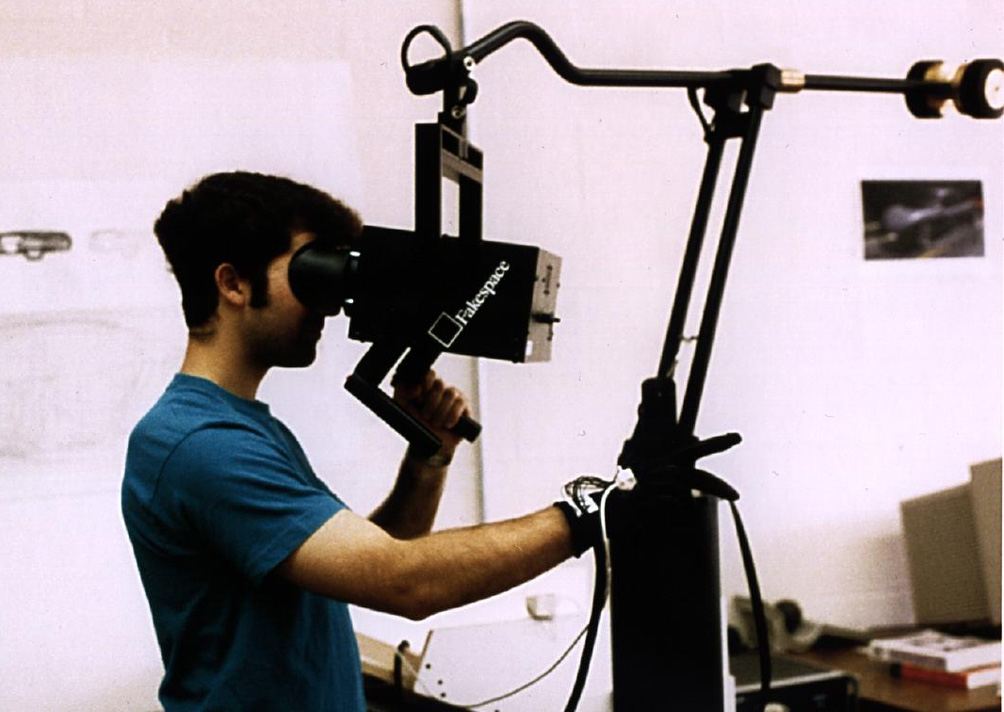 On the Fakespace stuff, the original monochrome “Boom” and later color versions – the fact that the orientation tracking was basically done using hardwired sensors with very low latency meant you got a great sense of immersion with their gear. Also the CRT screens in their stereo display were very high resolution for the time, 1280×1024 per eye, or something like that.