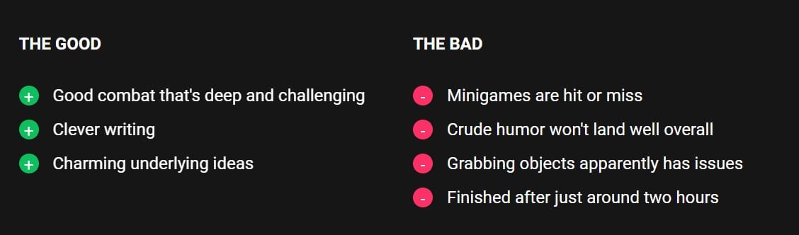 Last Hope Of The Internet have brought us an interesting action-adventure premise with Flavortown. Though I cannot check how it compares with the original release, there’s a solid idea at the core, packed with good humour and enjoyable combat. Unfortunately, it suffers some minor issues with grabbing objects and whilst it offers replayable minigames, they don’t do much to increase the brief gameplay time. For $6 an episode though, there isn’t much risk here and I’m certainly curious to see how this saga unfolds.