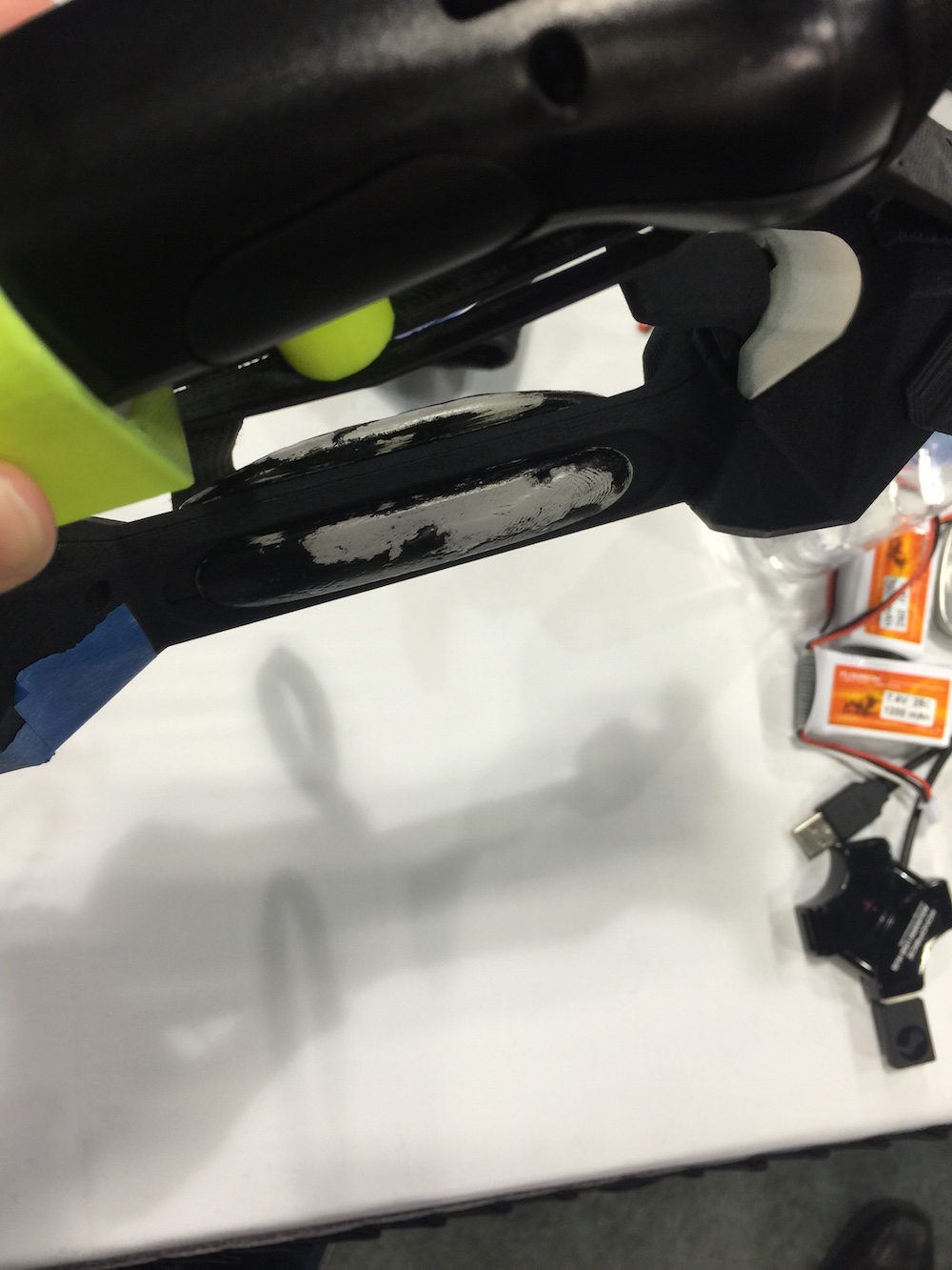 The Tactical Haptics setup is a 3D printed, hand assembled rig with a holster on the back for a Vive controller. The Vive controller provides all the positional tracking which frees the TH device up to focus solely on “kinesthetic” feedback. Founder William Provancher explained exactly how his company’s device works: