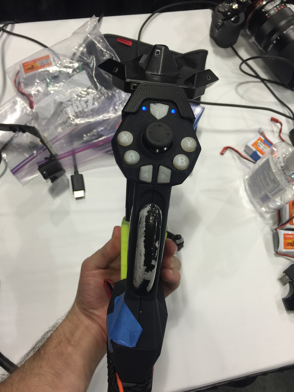 The Tactical Haptics booth offered two demos – a gun battler and a Tiltbrush-esque art experience. The gun battler was fairly interesting but it was the last 30 seconds of the painting demo that sold me on the technology. At the end of the art experience a grid popped up in front of my face that resembled an artists easel.