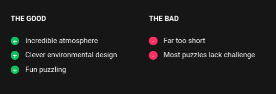 FORM is a little too short and lacking in challenge for it to be considered a true classic, but it stands tall as a VR puzzler unlike any other. There’s an understanding of this new medium here that few developers have been able to demonstrate. Its atmosphere is dense and engaging and its puzzles capture a strong sense of discovery, resulting in a brilliant blend of gameplay and experience. The flood of VR puzzle games could learn a lot from the foundations that Charm Games has laid here.