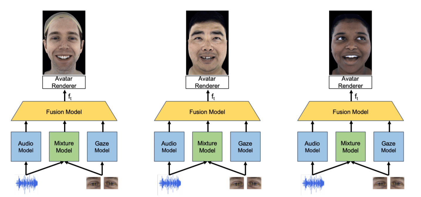 That’s why this latest incarnation of Codec Avatars does away with the need for dedicated face cameras. The new neural network fuses a headset’s eye-tracking data with the microphone audio feed to infer the likely facial expression.