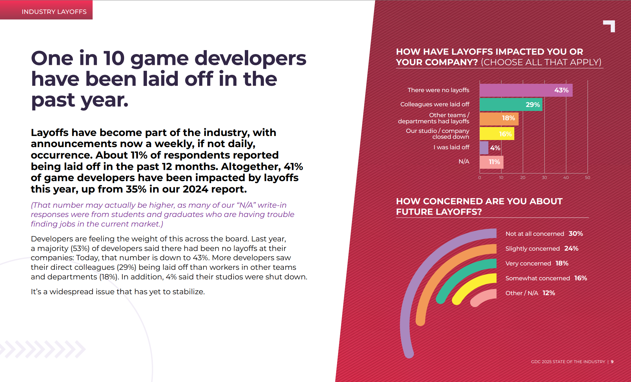 Other big names hit by layoffs include nDreams, Lode, TinyBuild, Codemasters, VRChat, Soul Assembly, XR Games, Toast Interactive, Resolution Games, Firesprite, Humble Games, Supermassive Games, Downpour Interactive and, most recently, Fast Travel Games.