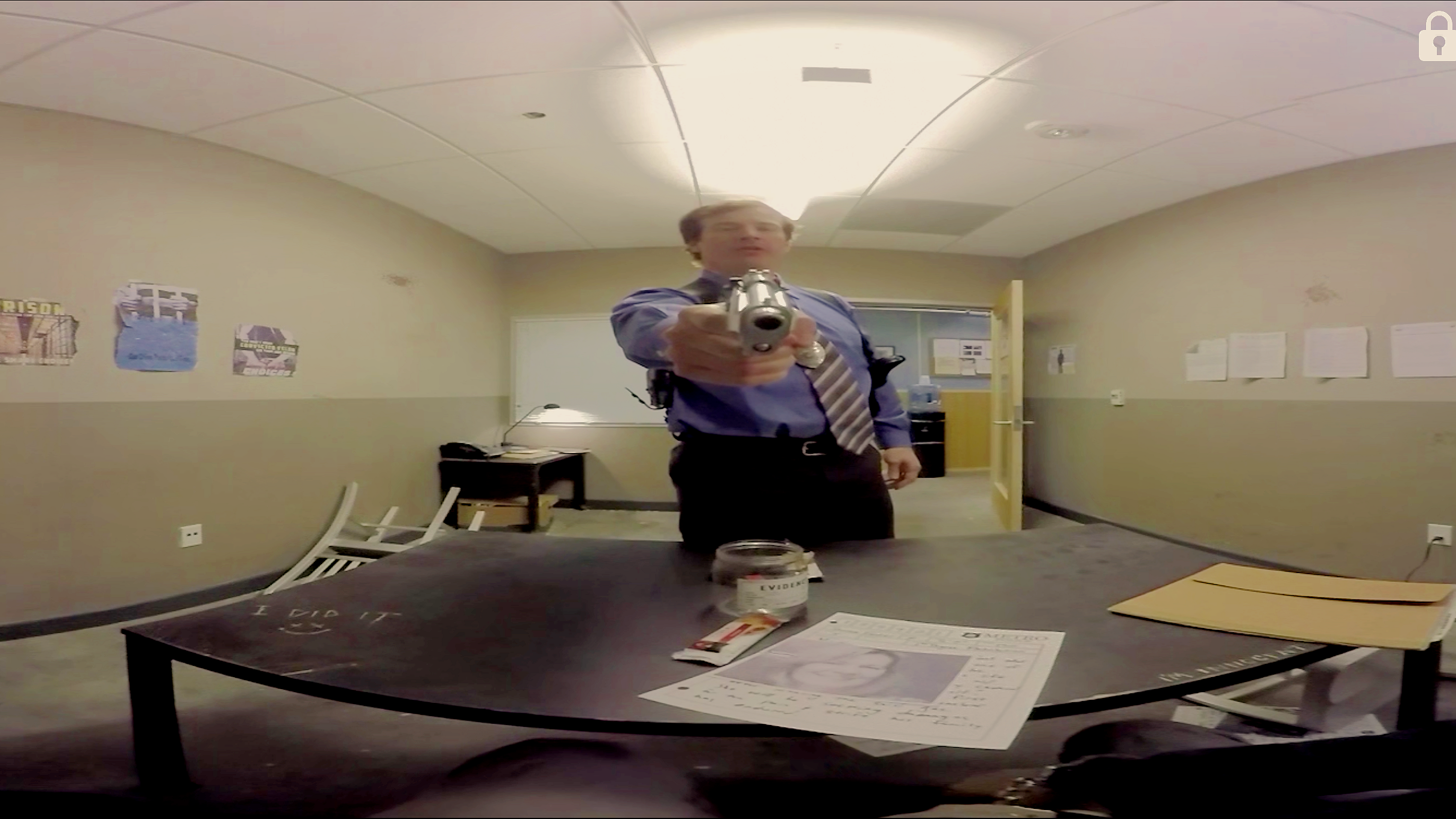 Without actually giving away the reason for the interrogation, the Funny or Die sketch makes great use of the 360-degree space. Everywhere you look, there are hidden jokes all around.