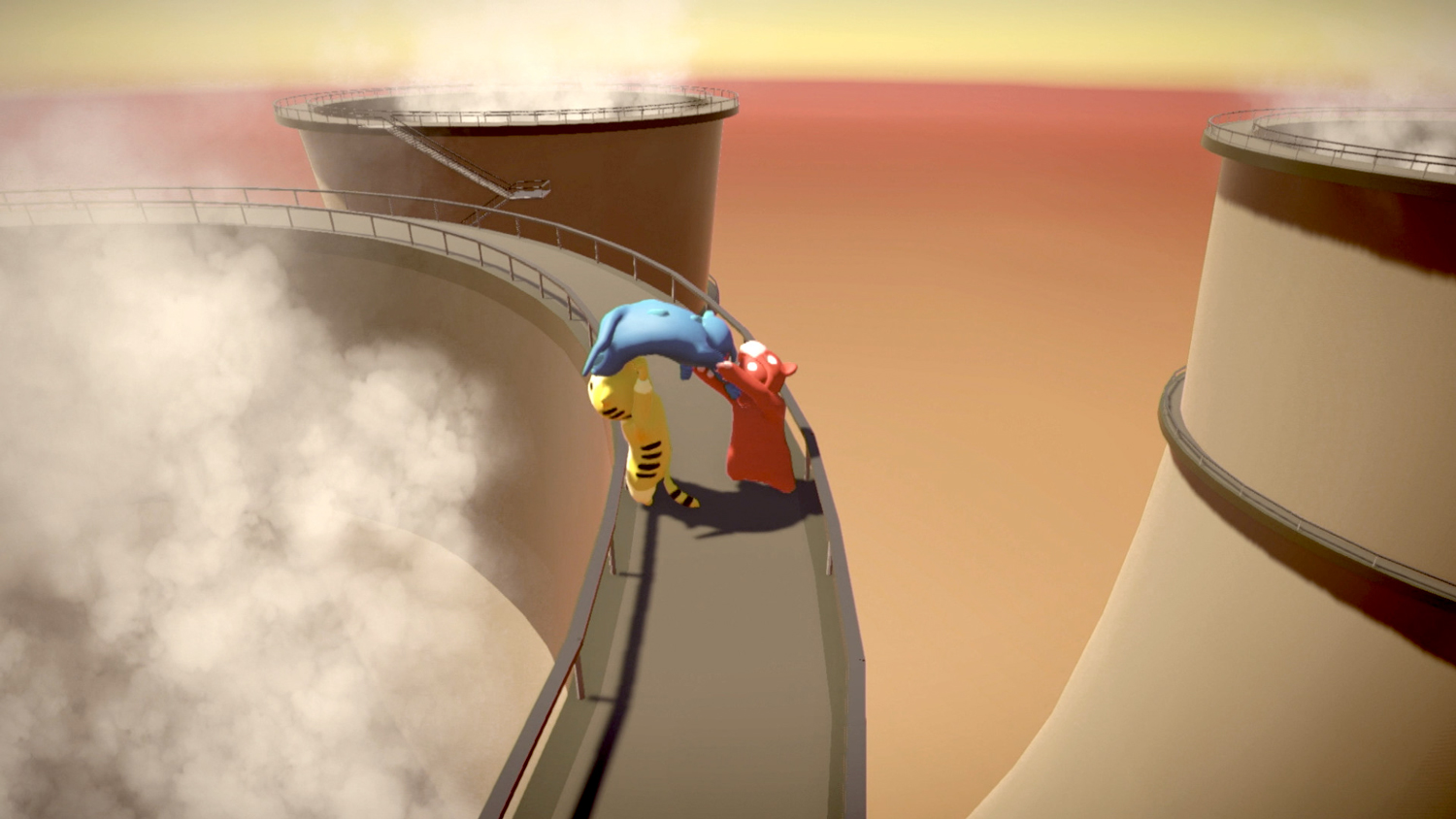 Perhaps that’s what’s key to Gang Beasts’ VR support: it’s additive. Playing in VR doesn’t rob you of the joys of local multiplayer as much as you might suspect, but that original option is still always going to be there. What this means is that, when you don’t have a group of friends around for an evening of punches, ear pulls and head-butts, you’ll finally have the option to go online, find your friends over the Oculus ecosystem, Steam or PlayStation Network, and do it all over the internet instead.