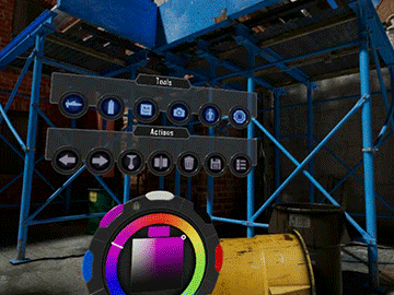 Ghost Paint includes a very realistic airbrush simulation as well, which is no surprise given Shane’s background. “I used to be an airbrush artist at the mall,” Shane explains, “and I held the Vive controller horizontally in my hand and thought, ‘hey, that’s kinda like an airbrush.’” The Vive controller does indeed work like an airbrush, allowing you to change the air pressure depending on how you move your thumb over the trackpad, and control paint spread and concentration depending on how far away from the surface you are.