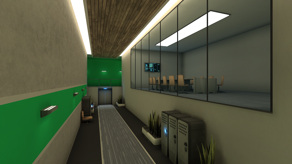 You play Term1nal on the Gear VR using a bluetooth gamepad. Once you’ve assumed control of your new robot host, you play the game from a variety of changing perspectives. The in game reason for this is that the optics of your vessel are malfunctioning so instead you have to observe her through the office’s CCTV cameras. Walking from room to room triggers new camera angles but, for the most part they will all be from a birds eye view. Certain actions will also trigger a first person viewing mode as well.
