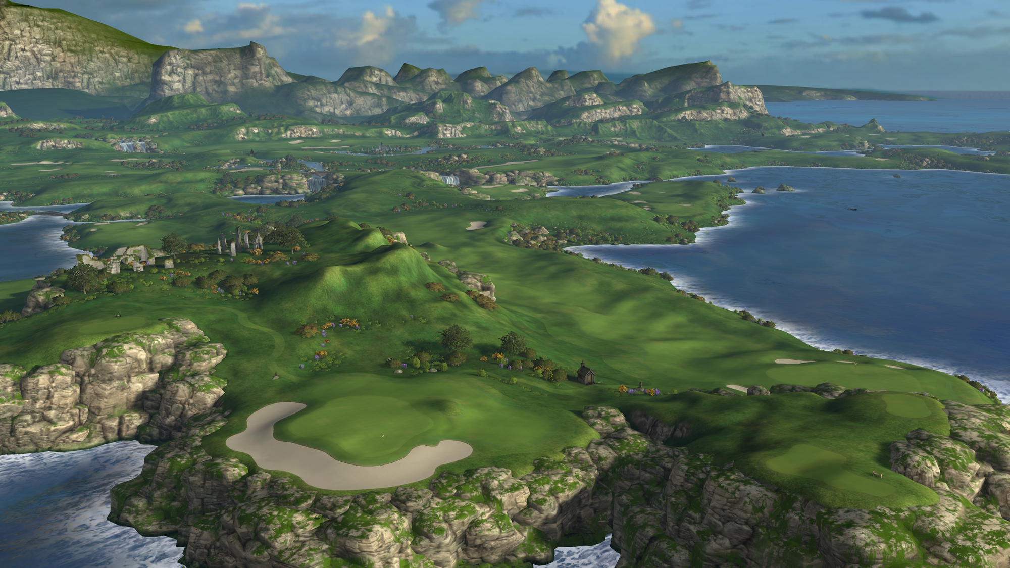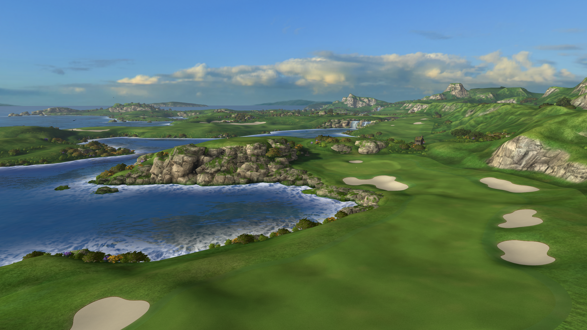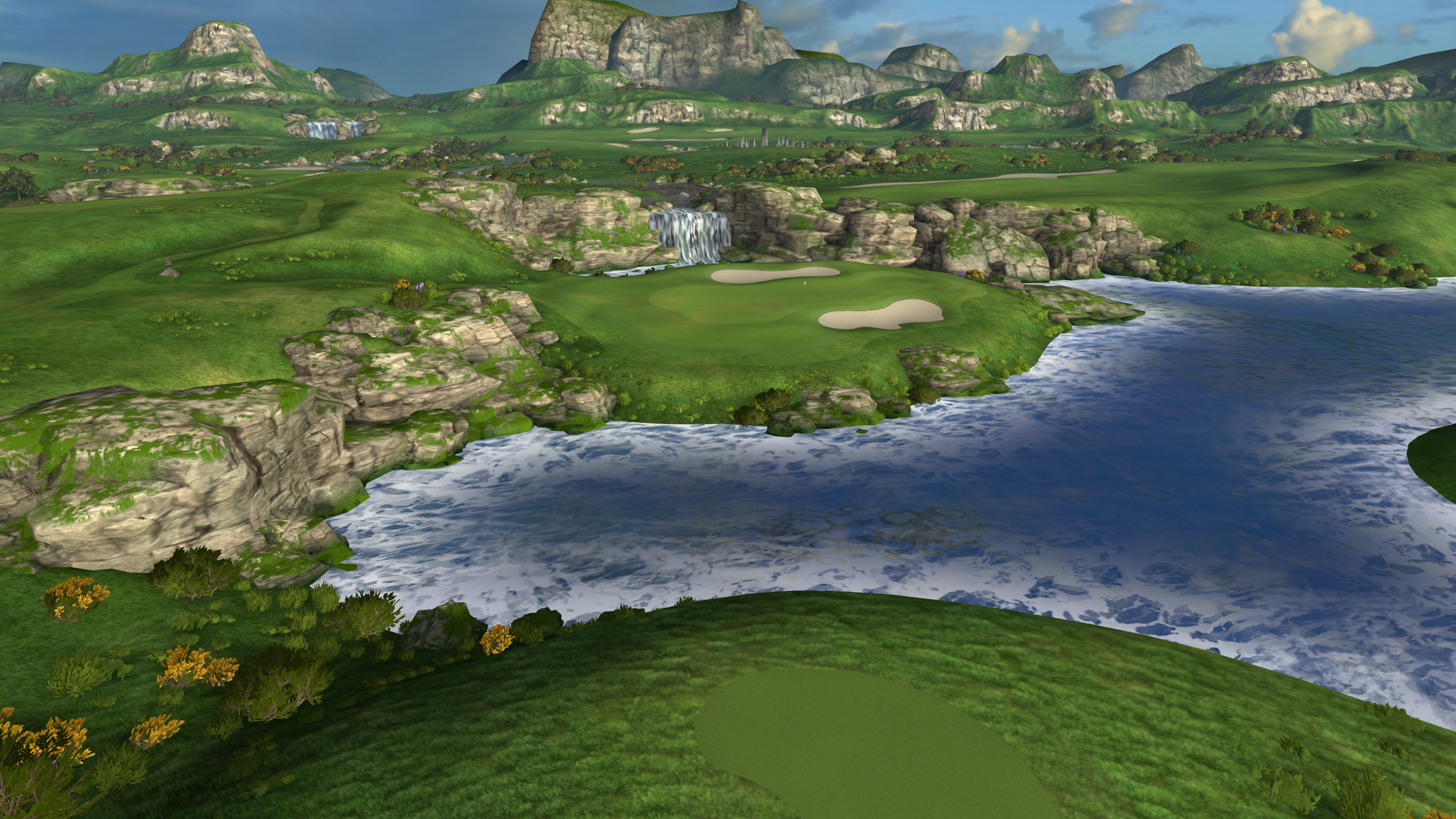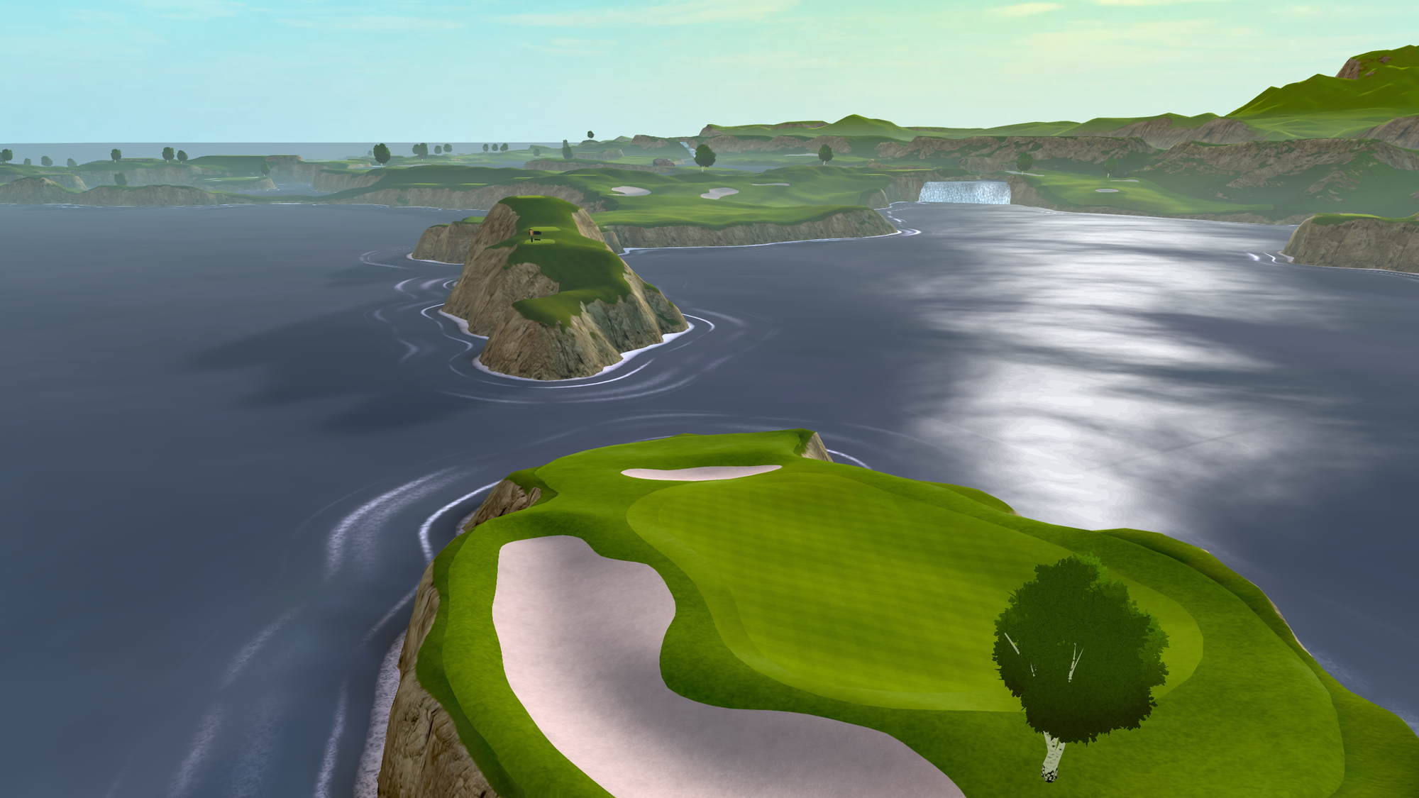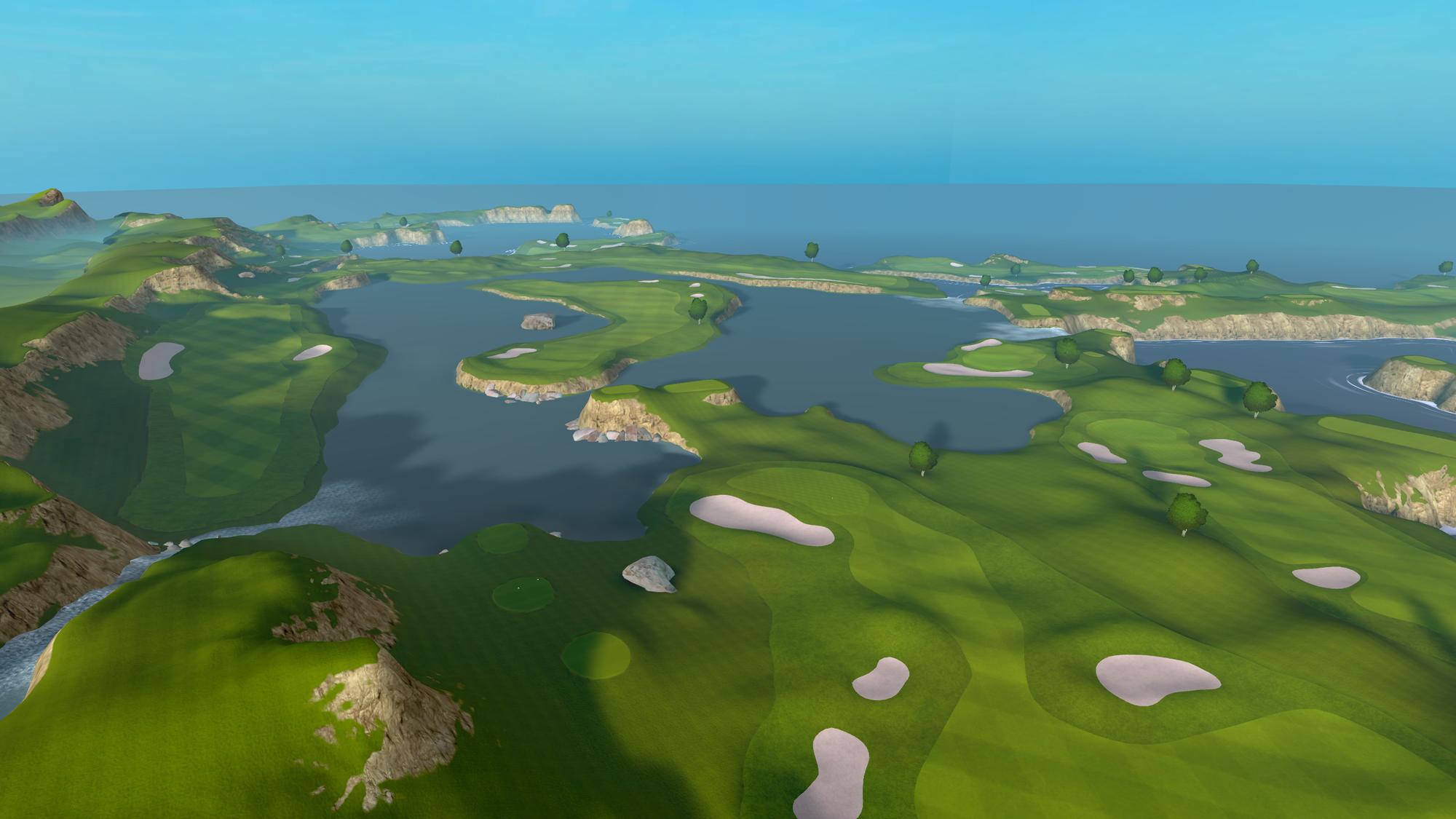 That 2021 release saw the game radically change from a putting-focused experience, with the only full-swing offering being a driving range, to full-swing golf. Cliffs was the game's first full course, "loosely" based on Roy Kizer Golf Course in Austin, Texas.