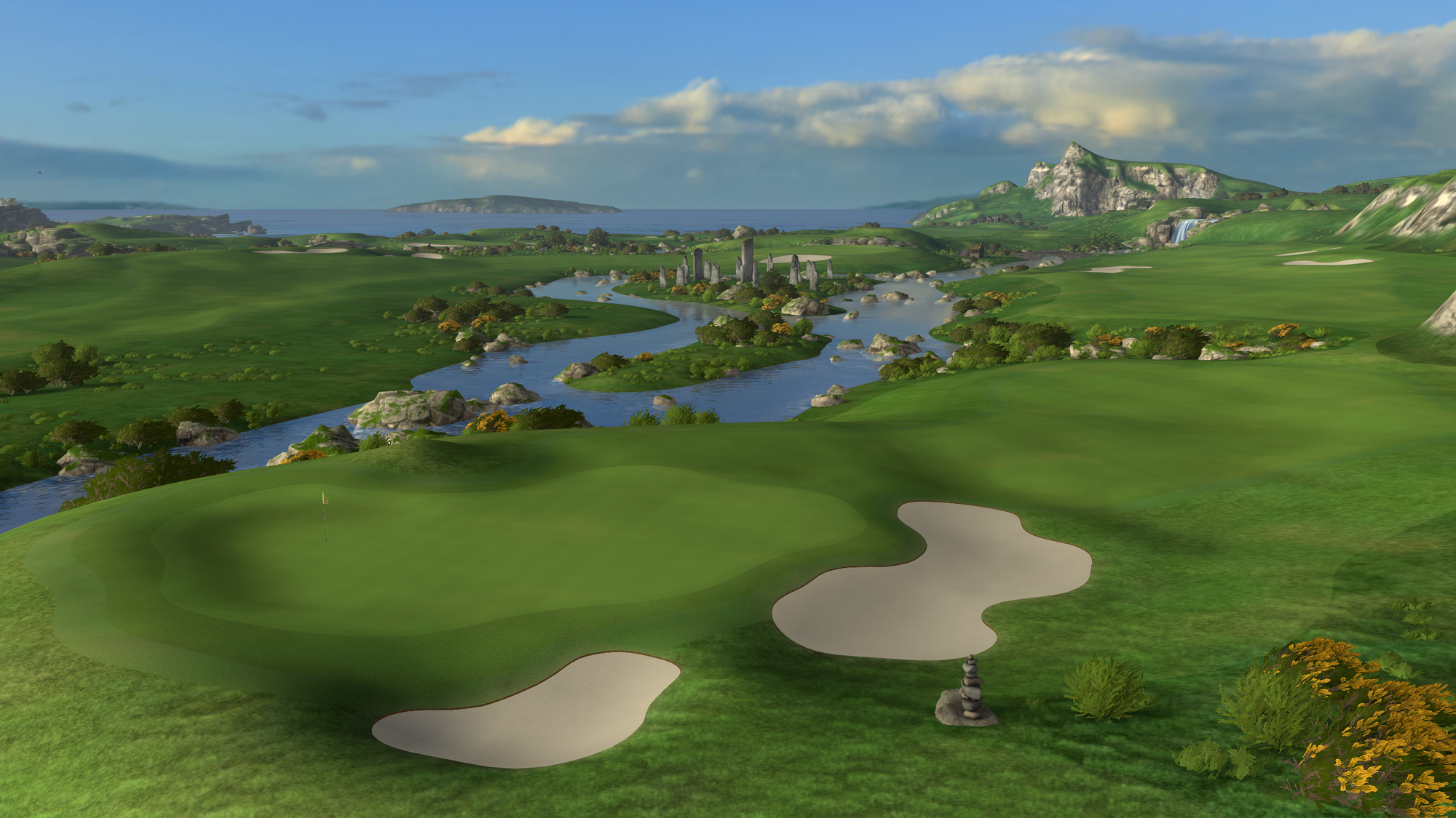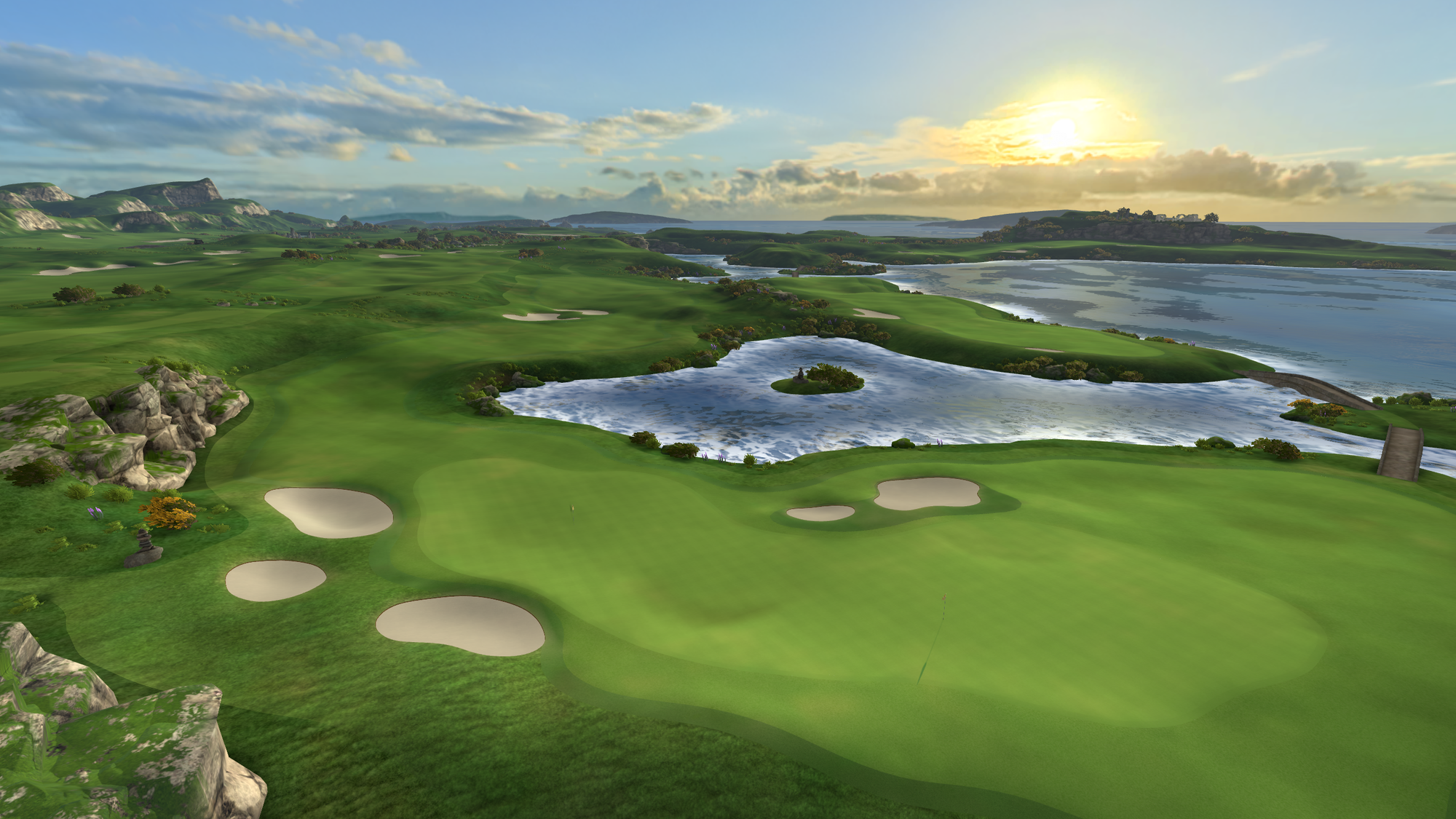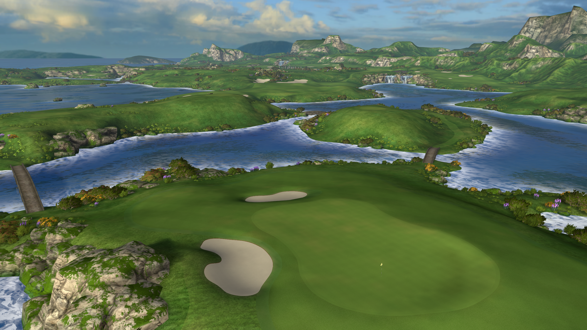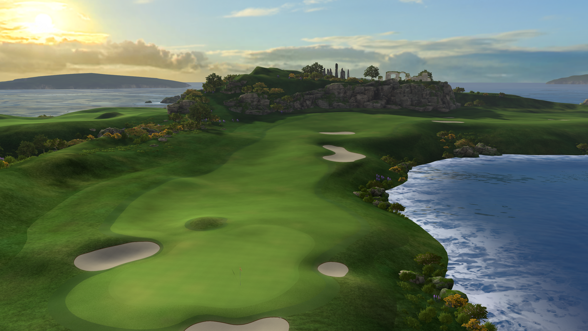 That 2021 release saw the game radically change from a putting-focused experience, with the only full-swing offering being a driving range, to full-swing golf. Cliffs was the game's first full course, "loosely" based on Roy Kizer Golf Course in Austin, Texas.