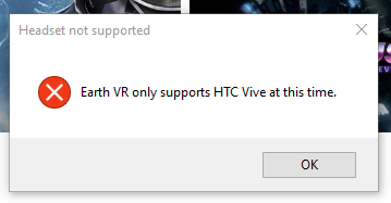For the time being, Earth VR is effectively exclusive to the Vive. If a non-Vive user attempts to open the experience they will receive a message prompt stating “Earth VR only supports Vive at this time.”