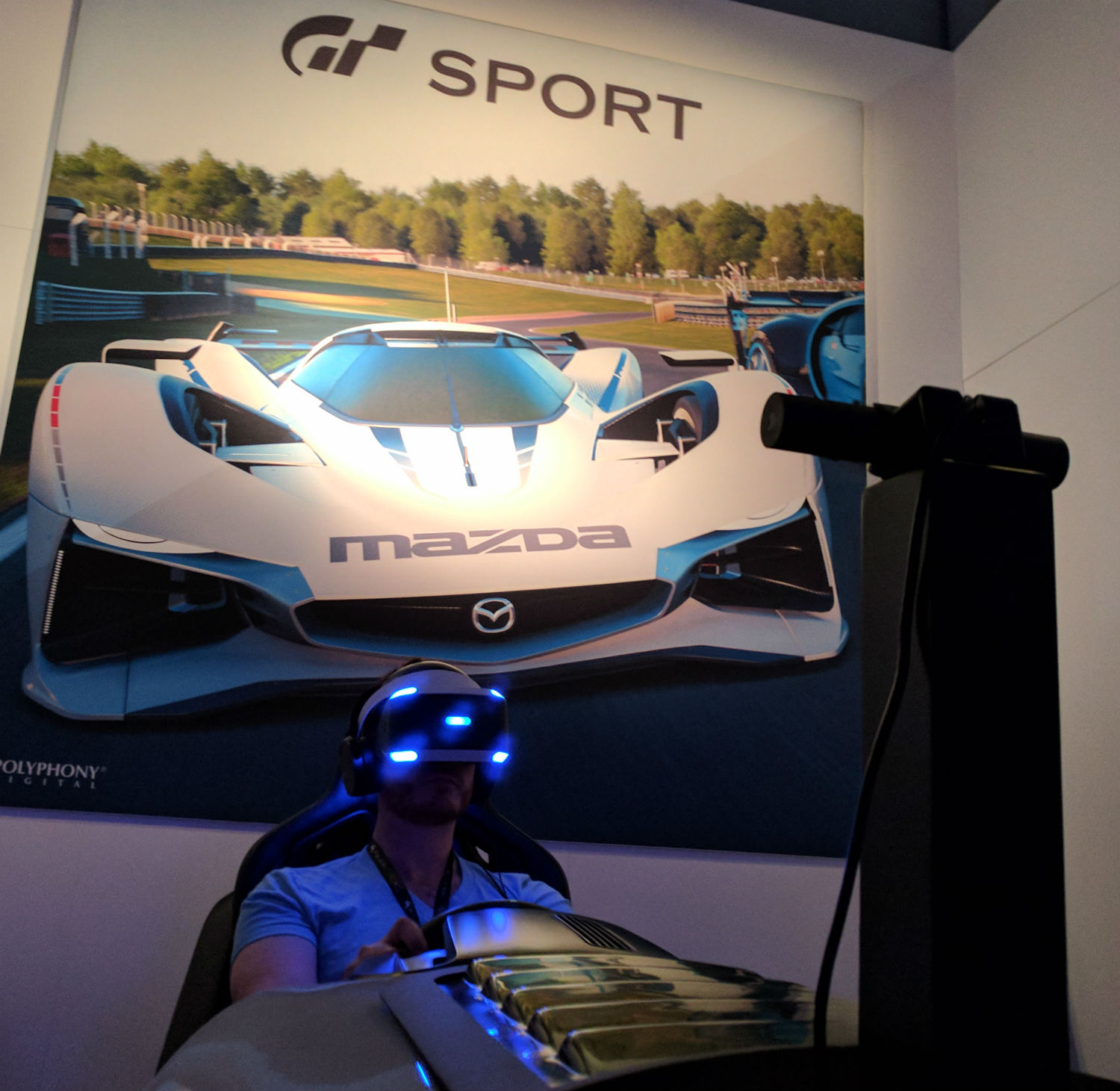 At the PlayStation Experience conference in Anaheim Sony showed GT Sport running on PlayStation VR with a full racing simulator setup.