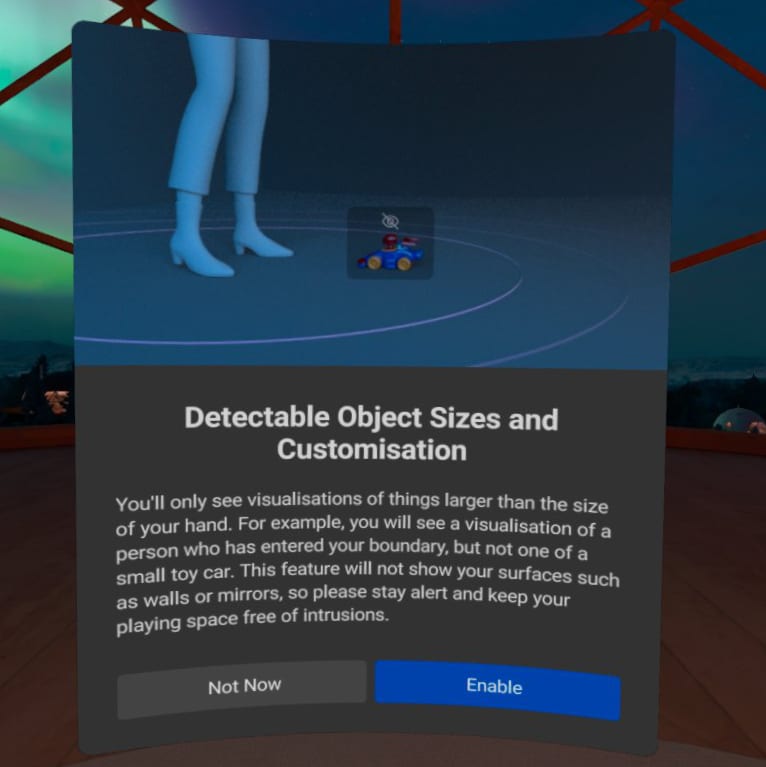 Based on the wording, it looks like this feature will let you know if any object bigger than a human hand enters your space while you’re in VR. That should mean less risk of accidentally punching your family or housemates in the face, and it may also protect cats and dogs that don’t understand you can’t see them.