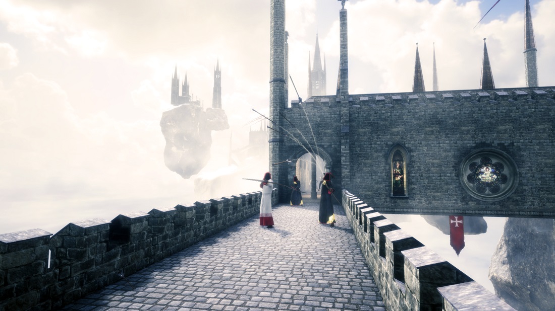 Visually it’s quite stunning, especially when you get a look at the outdoor environments. The whole castle and its adjoining towers are all floating, suspended high in the air. The AI isn’t remarkable and mostly just walks in a straight line towards you, but the way they evolve in subsequent playthroughs makes their lack of intelligence less noticeable.