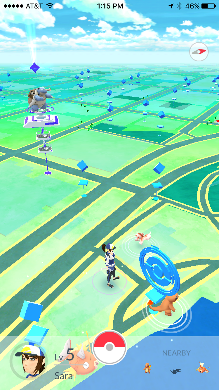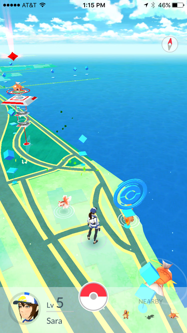 If you ever dabbled with Ingress, you’ll be very familiar with the flow. While you’re out walking around in the real world, Pokemon GO is tracking your location. It knows when you’re near things like bodies of water or major points of interest and landmarks. The designers of the game pre-determine which of these spots are designated as Pokéshops, where you can buy new items, Gyms, where you can battle other trainers for regional control, and so on.