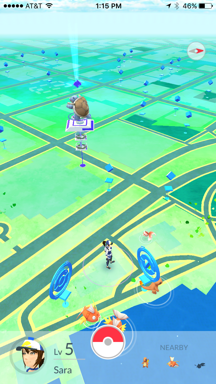 My biggest gripe about Pokemon GO is undoubtedly the fact that the only way to duel other players is at physical gym locations. If I were to walk down the street and come across another Pokemon GO player, we could not engage in a battle, right there, on the spot, like characters do in the handheld games. This feels like a major missed opportunity and seemed like the most appealing aspect of the game from a conceptual basis.