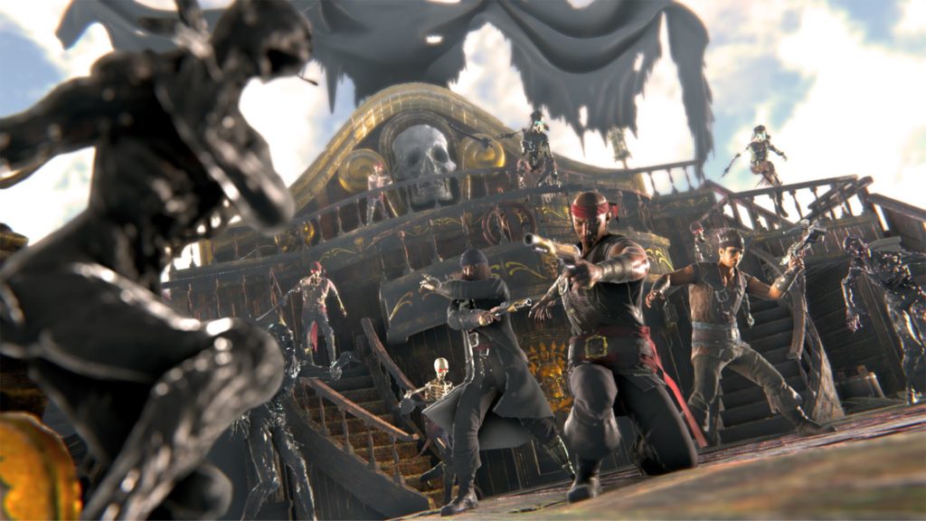 The folks at Sandbox VR didn’t send footage of my time in this one, but basically it’s a Davy Jones-themed cursed pirate ship adventure. You can see some clips directly above right here in the official trailer. Instead of rifles we used flintlock-style pistols and had to fend off waves of an undead pirate crew. The variety in this first scene was already much better as some enemies threw weapons at us, some had swords, and they all moved at various speeds.