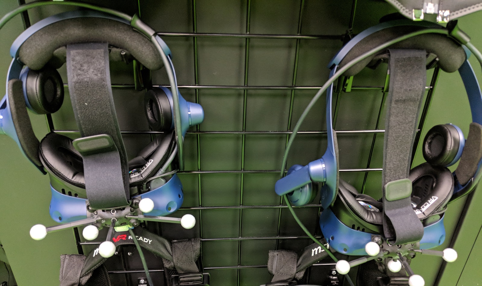 As great as The Void was, they don’t have anything like this in place which feels like a major missed opportunity. All they have you do instead is take a regular photo wearing the gear afterwards, but it lacks the mixed reality flair. The setup at Sandbox uses a mixture of HTC Vive Pro headsets, tracked rifles, backpack PCs, haptic feedback vests, and sensors on your wrists and ankles for full-body tracking.