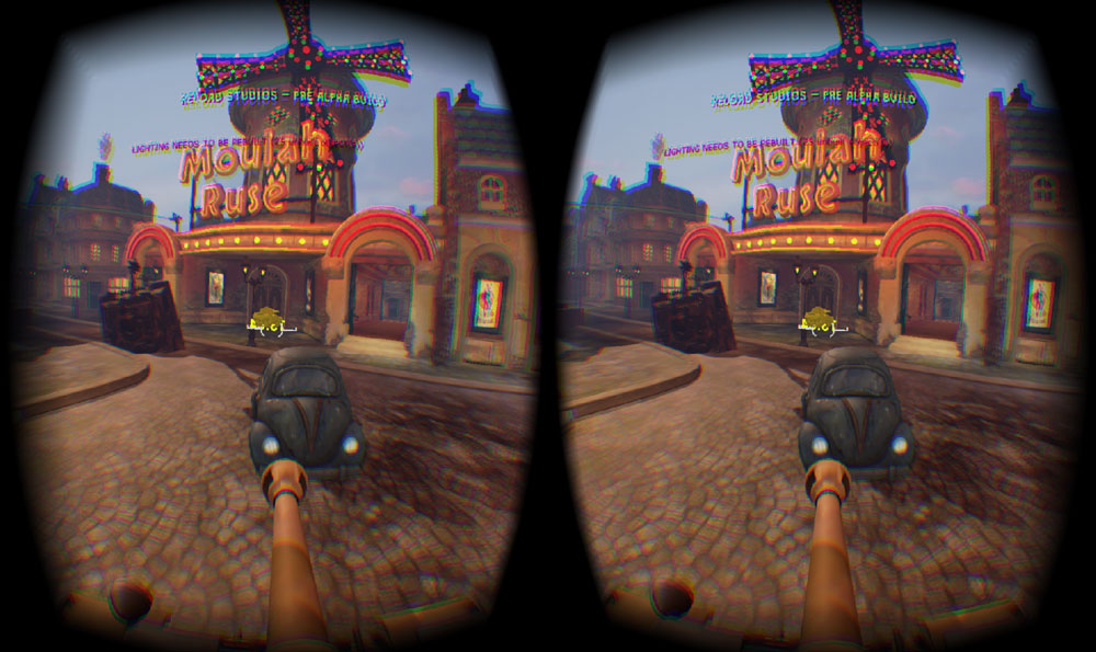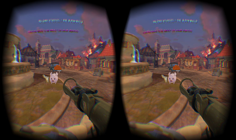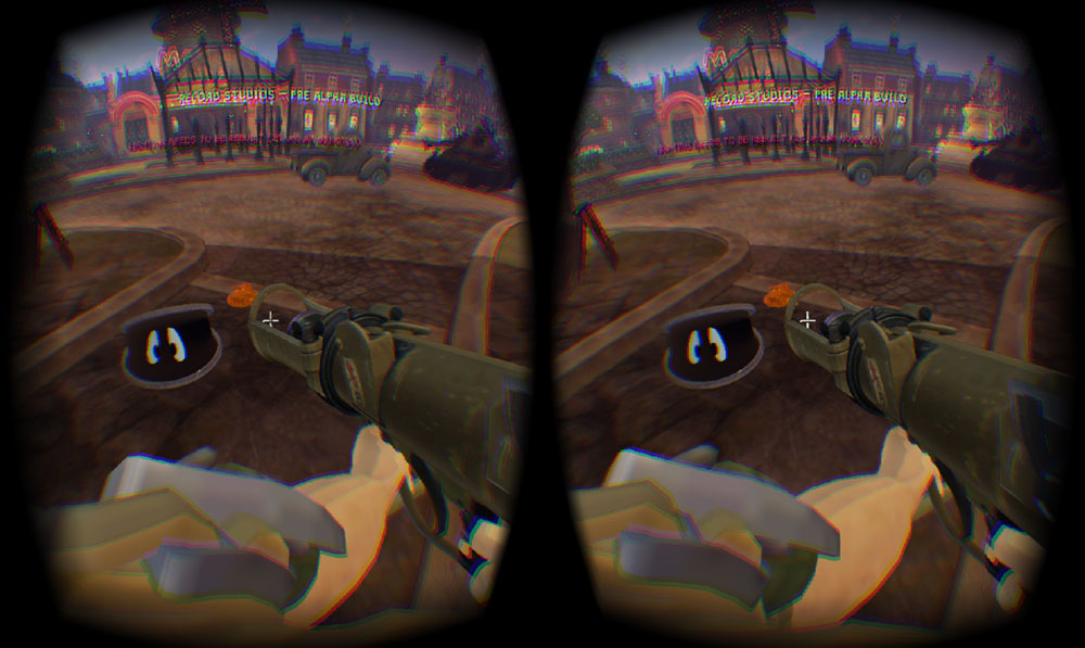 I’m sure you can imagine the confused faces as we began standing on chairs looking for outlets as I set up my laptop and DK2. Thankfully, the place wasn’t too full at the time, and I was able to play relatively undisturbed, aside from one group of festival goers who were… thoroughly enjoying their time at SXSW and decided to sit at the table behind “the guy with the funny looking mask.” Finally set up, albeit with wonky wi-fi, it was time to dive into Reload Studios new game, World War Toons, a multiplayer first person shooter set in WWII.