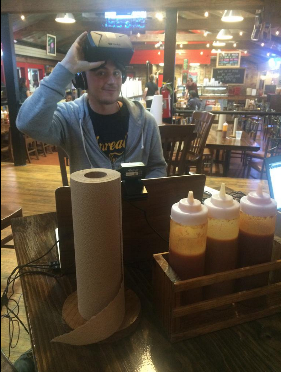 I’ve tried VR in some fairly unconventional places, but perhaps this was the strangest. We were in Austin, Texas checking out all the SXSW festivities and VR news at the event and it was our last day. We had just headed into Austin from our rental house (i.e. ‘the VRHaus’) which was nestled an ever so convenient hour away from the city proper. I had an online play test scheduled for 4pm, something I was more than well aware of when my stomach began to growl in the car. With only 45 minutes until the start of the play test the executive decision was made, we were going to try and do this in a BBQ joint because there simply wasn’t time to make it to two places in SXSW traffic.