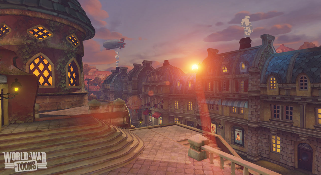 In VR especially, this game looks amazing but the art direction is not just for looks, it is utilitarian as well. “Going cartoony gives us tremendous room to bend rules,” says Reload founder, James Chung “we can work with a lot of different things that will help us to make the game more fun and also make it better for VR.” The strategy works extremely well as design elements no longer bound to realism allowed the developers to experiment with new tactics for dealing with motion sickness issues that plague many VR FPS’s (especially those without some sort of helmet around you). For example, one common thing that can lead to sim sickness are drops and jumps, two things fairly ubiquitous in first person shooters, in World War Toons the game makes use of the cartoonish art direction to solve this problem. Whenever your character drops down his helmet balloons out, like a parachute, and slows your fall speed allowing you to gracefully without jarring your stomach. This also contributes to the gameplay, as it allows for ‘jump pads’ and zip lines on the map which catapult the player around the map, giving you plenty of air time to get off some sweet aerial kills and add to the zany nature of the game.