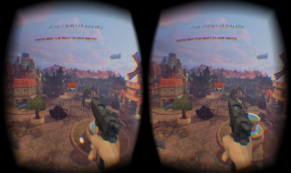 One other issue in VR that the art direction helps is a lack of a mini map. In first person shooters it is vital to know where the action is, and to have a vague idea of where your enemy is. In VR it is incredibly difficult to design a user interface that not only fits the style of the game but functions well in the headset. Rather than going with a mini map to tell you where the action is, when players die in game their ghost dons some angel wings and floats up into the sky. This is not only a cute animation effect, it also allows players to effectively position where the action is currently happening. This is an extremely elegant solution that is as functional as it is fun, as Chung told me “we want to make a game that is just pure fun and makes people laugh,” and that they did.