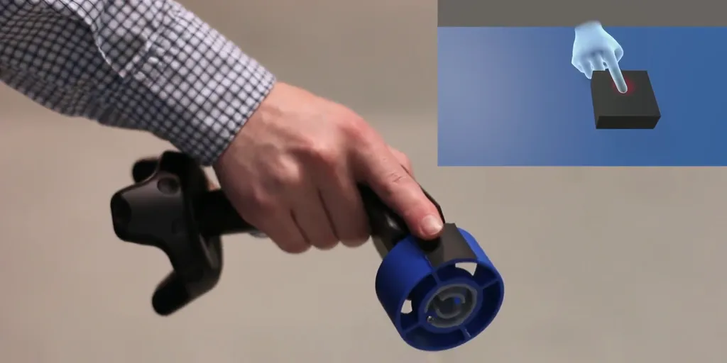 Dubbed ‘Haptic Revolver’, the controller used a roller of different materials which can be actuated on demand based on what you’re touching in game. Benko stressed that it didn’t particularly matter exactly what input the fingertip received. As long as something happened, the brain accepted it as valid input.