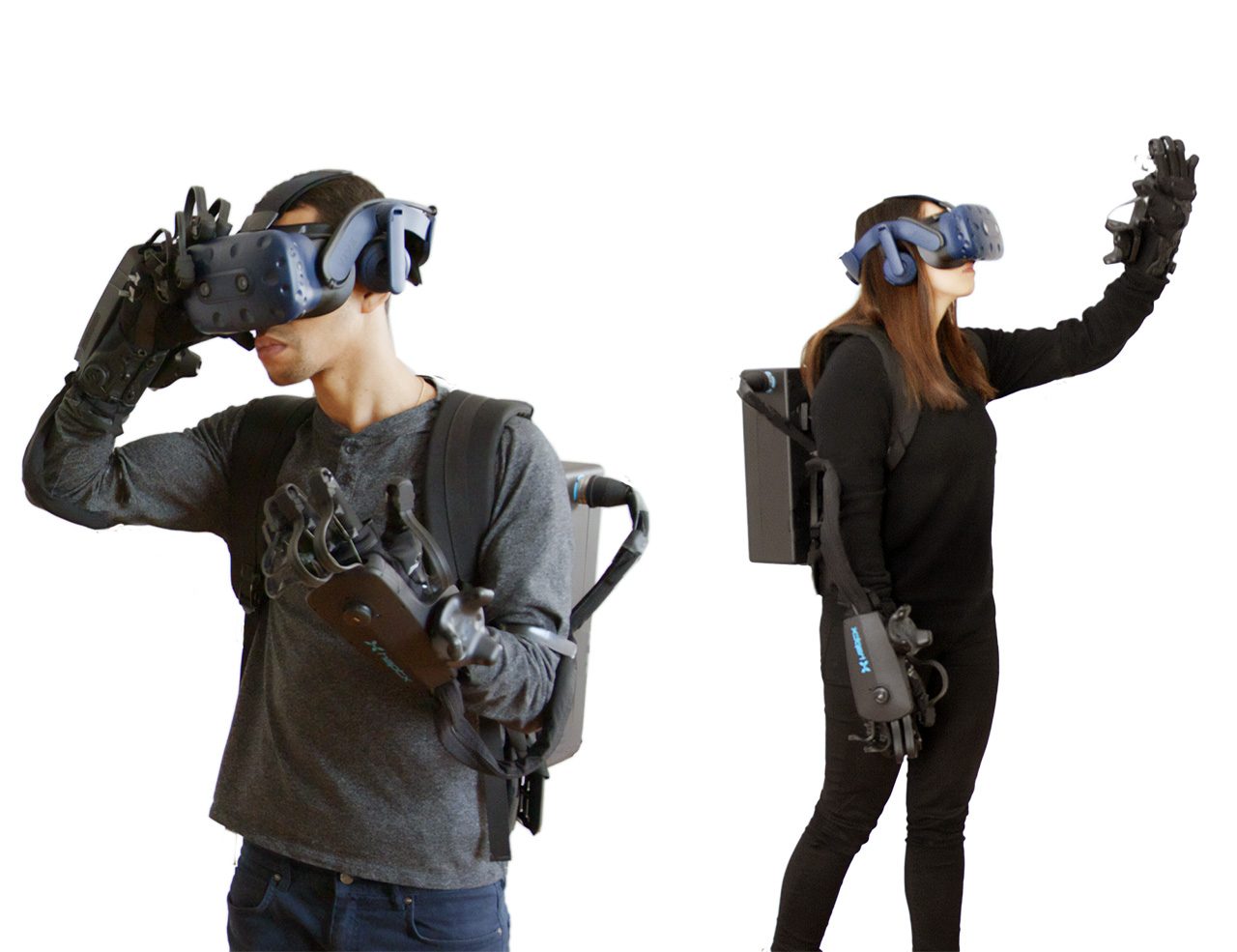 HaptX gloves have “true-contact haptics” – 133 tactile feedback points (per hand) that physically push against your skin to simulate the texture of objects, alongside “exotendons” on each finger to restrict its movement in response to a virtual object or surface. Each finger is uniquely tracked using a custom electromagnetic system with sub-mm precision.