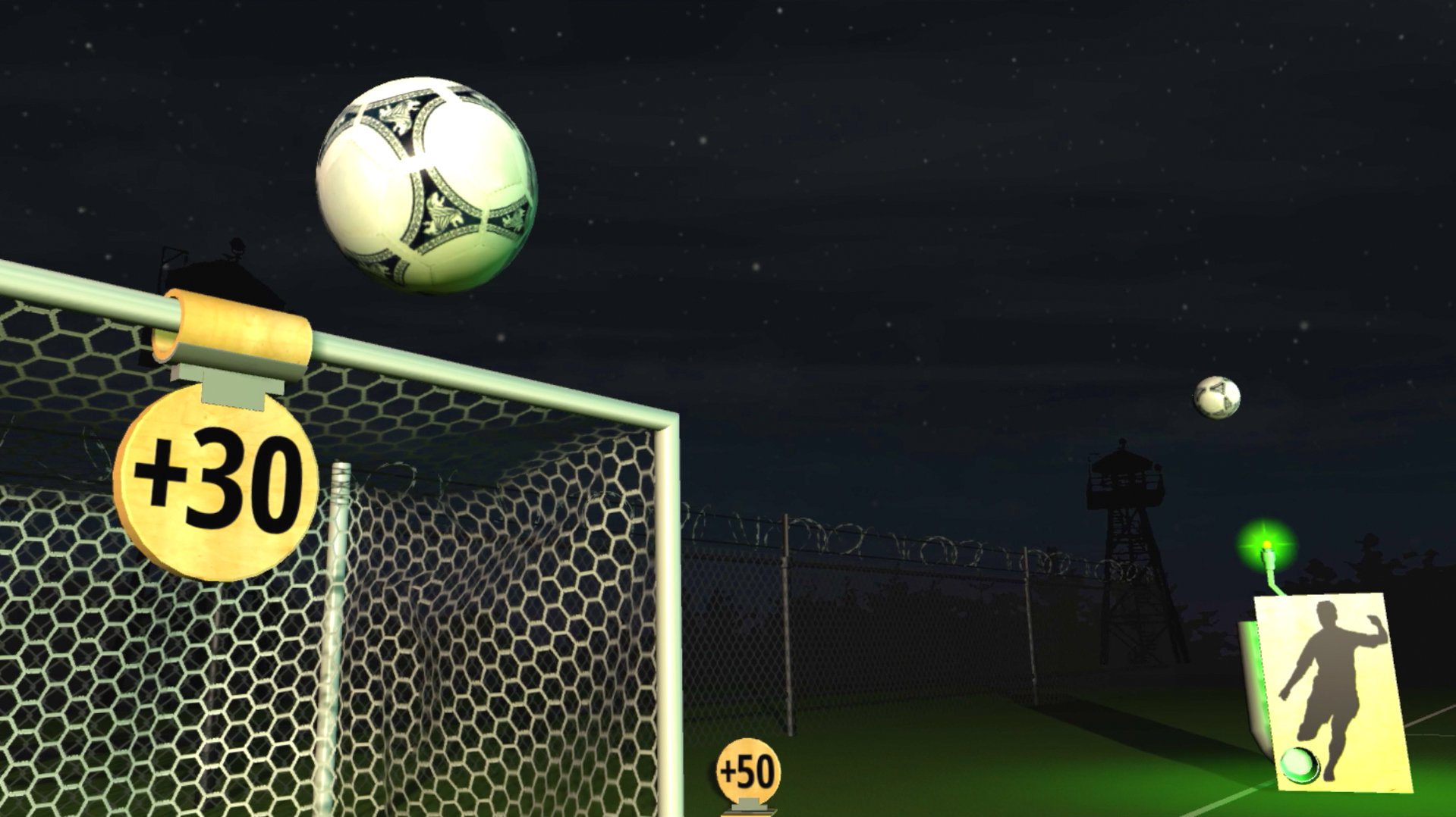 As the name suggests, both titles are soccer games, but they booth look like they are based around the exact same mechanic: using a headset’s head-tracking to hit an incoming soccer ball at various targets. It’s a simple mechanic that’s open to imitation, but it’s bizarre to have two games share the same name and concept. The most striking comparison, though, comes from the visuals and art direction.