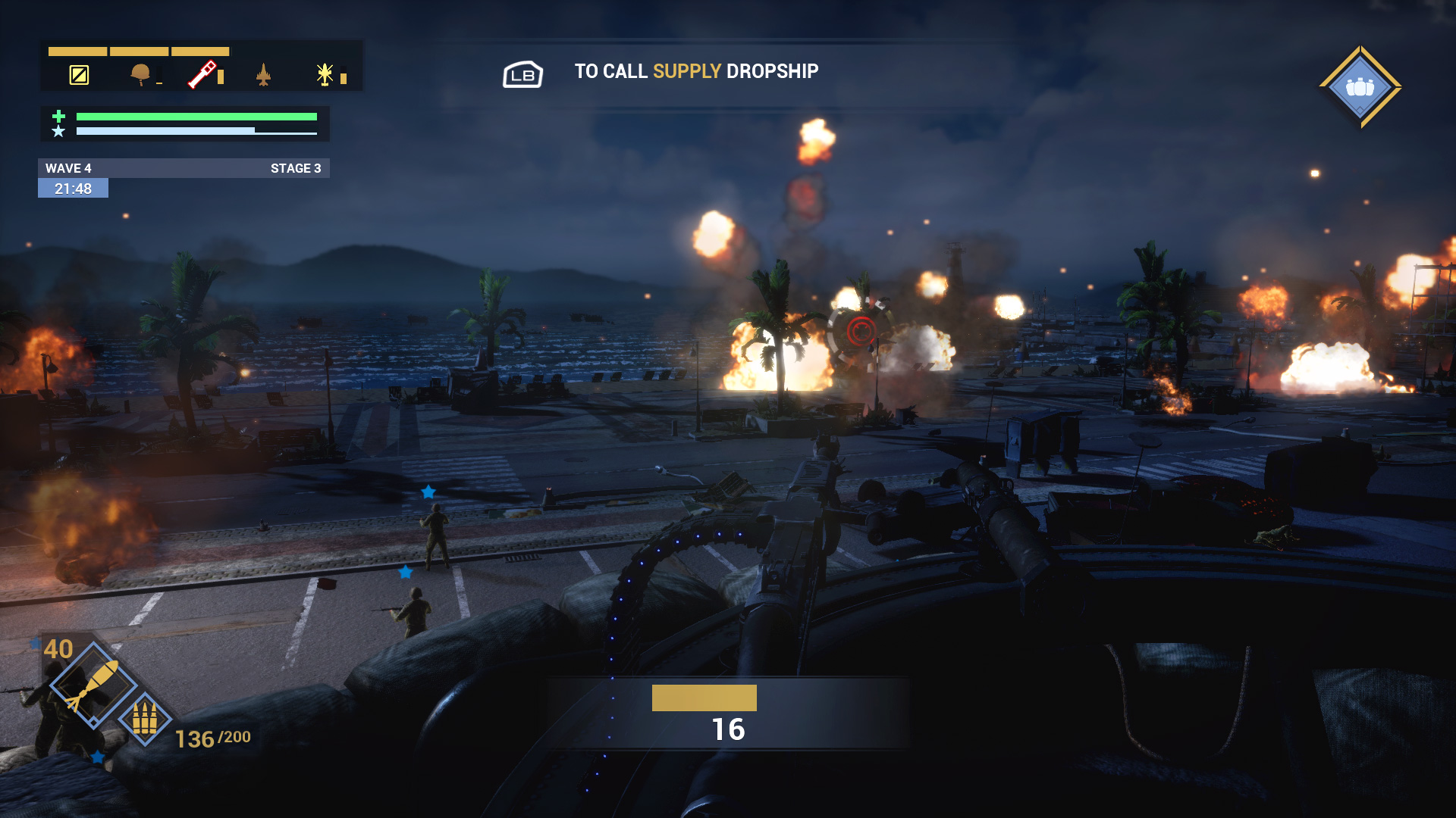 Once you get past the exposition, you’ll find that the basic gameplay of Heavy Fire: Red Shadow is simple beyond belief. Across four different stages – the game says it’s eight, but it’s just four with options for day and night – you swivel a machine gun turret and mow down wave after wave of North Korean soldiers, boats, and ground vehicles. With a rocket launcher by your side and a handful of perks that feel similar to score-streaks in Call of Duty, you can usually weasel your way out of danger, particularly because there are very few surprises over the few hours it takes to complete the campaign. You kill the enemies on the screen, you wait a few seconds, and more show up. You repeat this process for about 15 minutes until they arbitrarily decide to stop fighting you.