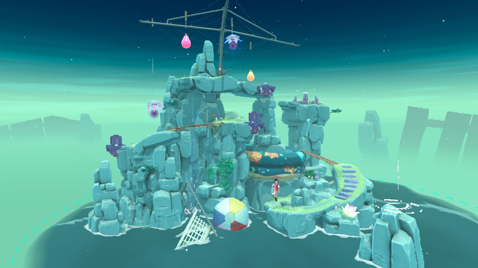 Your goal is to transport a pink orb to a portal at each island's peak using your lantern, gradually introducing more complex mechanics. For example, some flowers contain a required orb you can use to activate a bridge. Other flowers might automatically absorb your orbs if you walk past them, leaving you with no immediate means of getting another. That can be a problem if, say, you encounter a dark cloud that's only crossable with a light source. Likewise, some cloud paths can only be walked over without an orb.