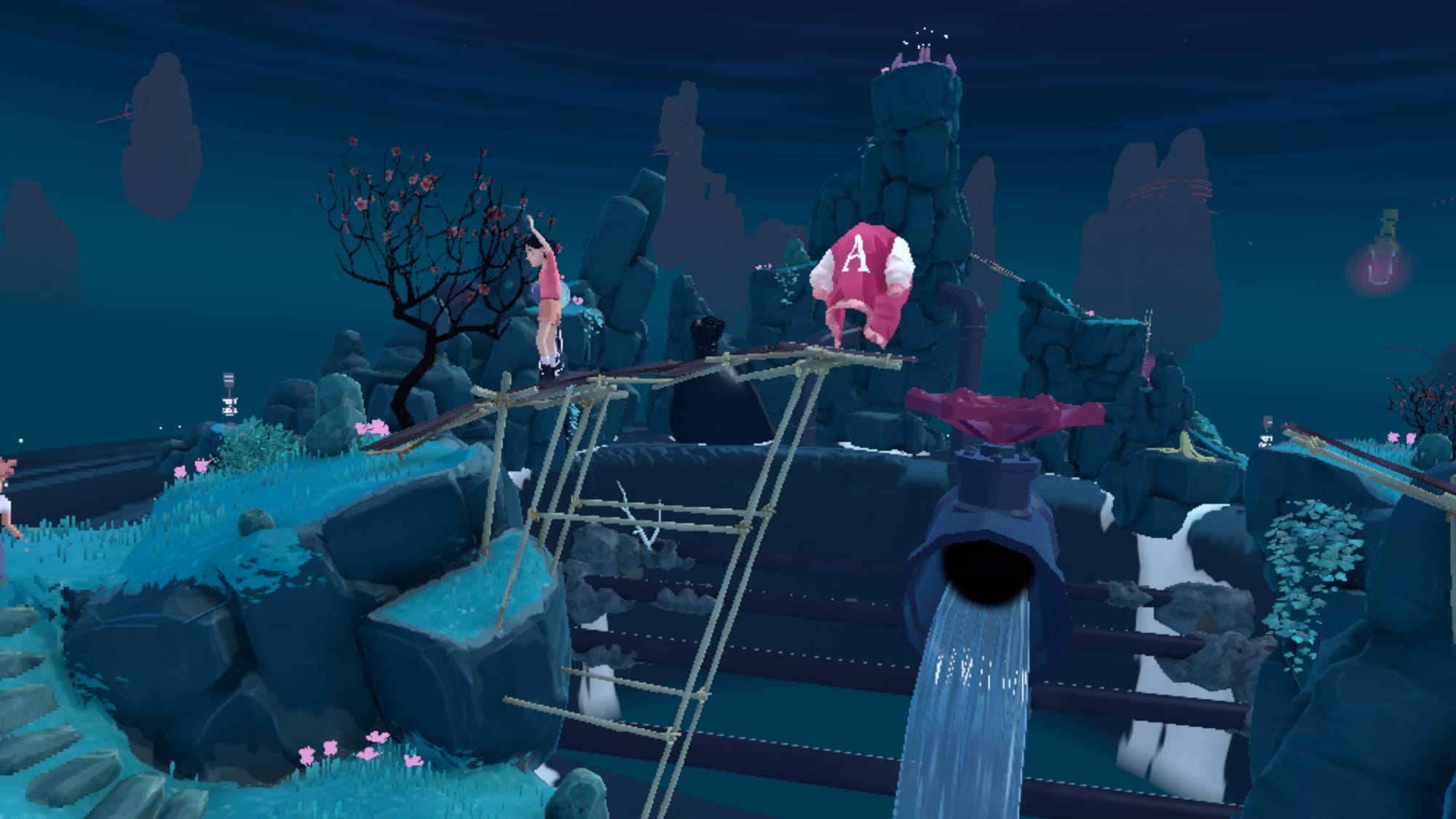 Exploring this world from a third-person perspective, you're tasked with manipulating time to guide Arina and Frendt across each island, which catchingly mixes gorgeous scenery with everyday objects. Hidden Memories of The Gardens Between successfully invokes childhood nostalgia through colorful yet charmingly surreal imagery, whether that's the oversized sofa with a popcorn bowl atop a rock formation or seeing giant bicycles in the distance.