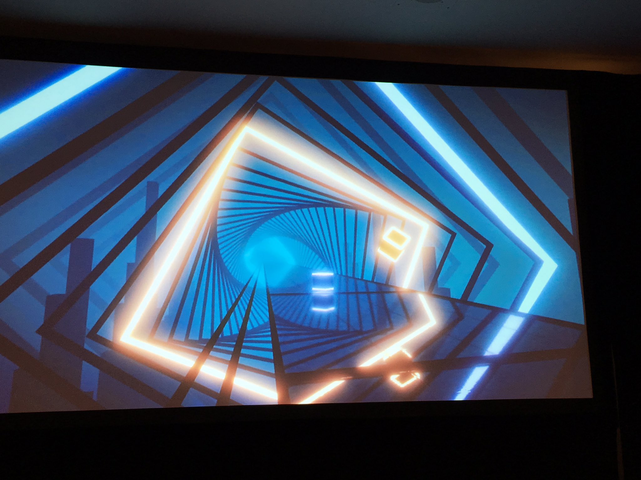 Beck began his talk by explaining that Beat Saber owes a lot of its creation to a critically acclaimed and massively popular mobile phone game named Chameleon Run by Hyperbolic Magnetism. It’s a simple little game in which you control a small character that is constantly running at high speeds while you make him jump and change colors to match platforms. That’s about it.