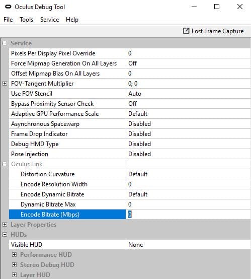 Once you’ve opened the debug tool, find the Encode Bitrate (Mbps) setting under Oculus Link — make sure it’s set to 0 before using Air Link for optimal performance.