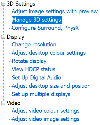 To open the NVIDIA Control Panel, right click your desktop to find the shortcut. Once it opens, navigate to the Manage 3D settings tab.