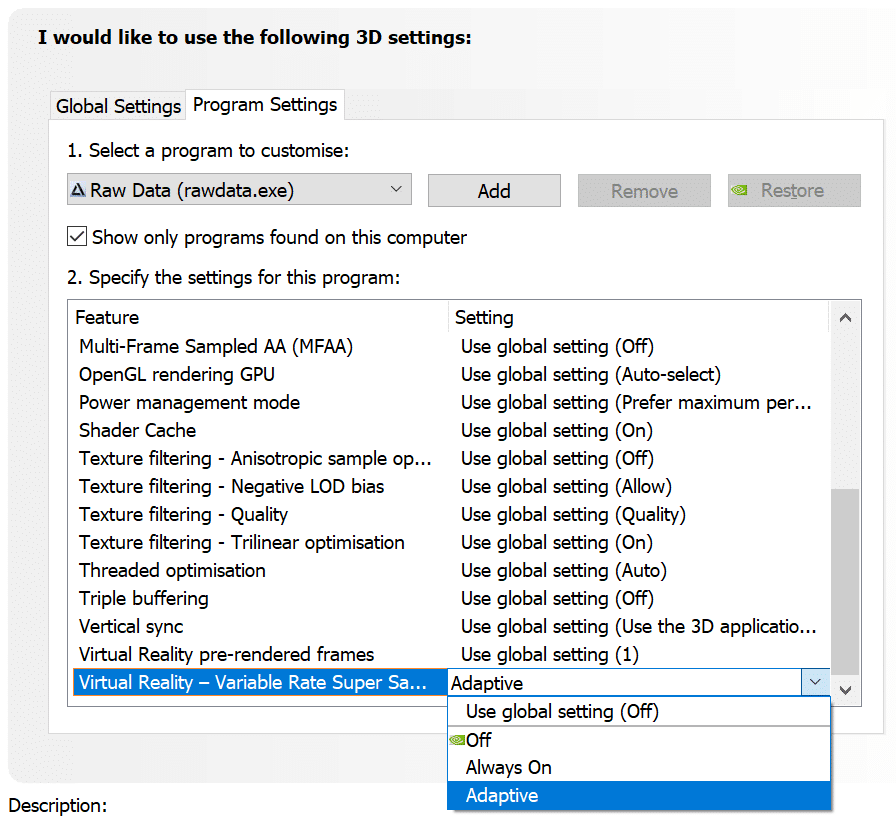 Within 3D Settings, select the ‘Program Settings’ tab and scroll down to the very bottom setting.