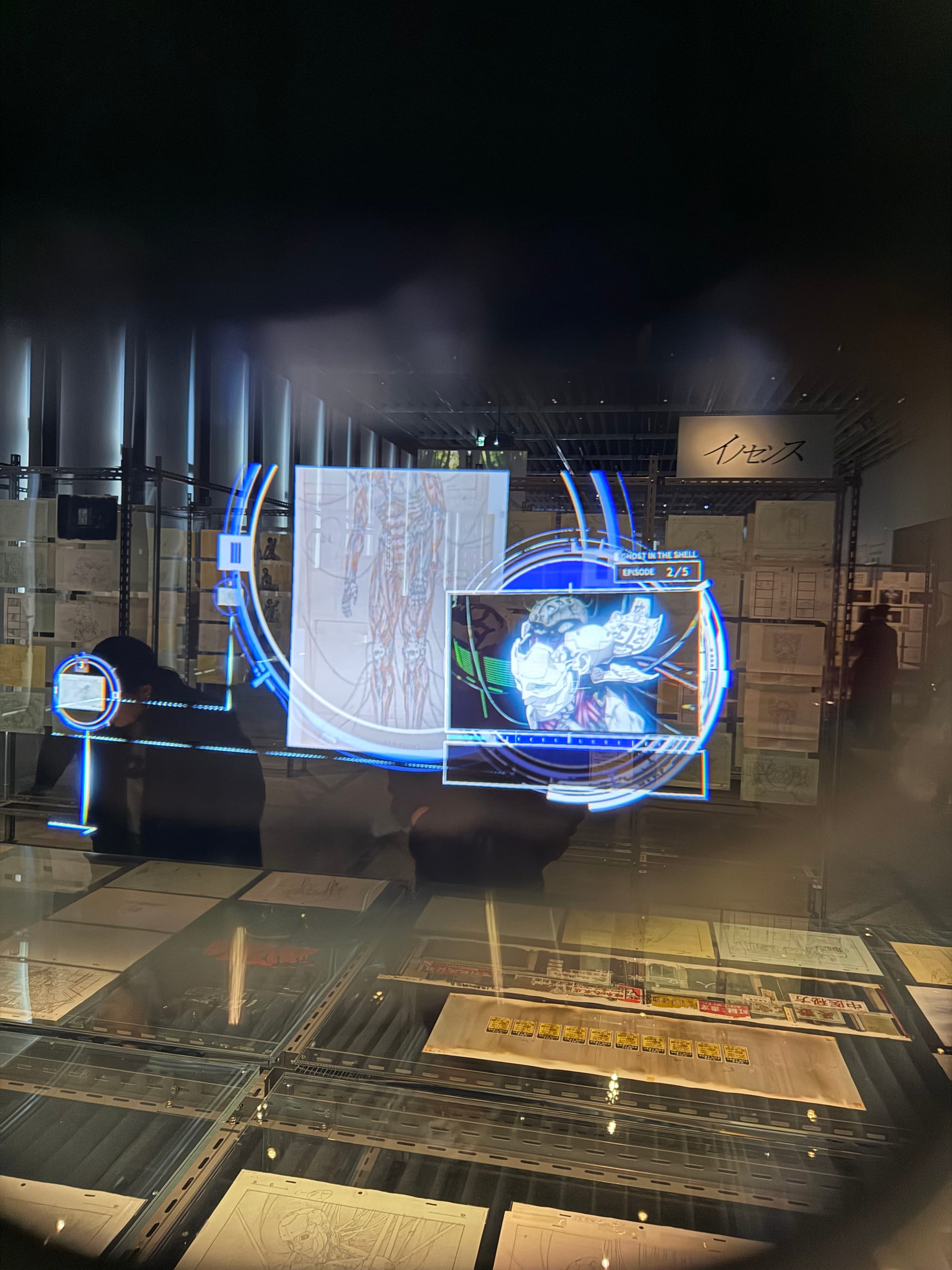 Of course, it doesn’t do this for every sketch, but it’s easily possible to wander the floor and look at these assets at your own pace, then scan these enhanced works at any moment. Newly produced artworks are placed alongside these original production materials that each lean into the themes of the series, leaving you with fresh perspectives to ponder as you bask in the world of Ghost in the Shell. One that particularly stood out to me was a human-sized doll in a box with a mirror for a face, reflecting the viewer as they stared at the piece. When humanity can be moved into a new shell to the point the flesh is unimportant, what is a body? What is human?