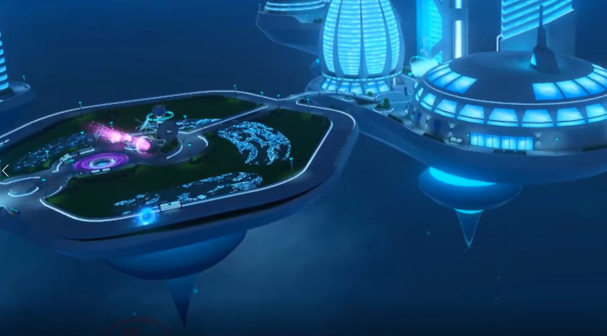 The next world was one of my favorites. Pictured above, it’s a giant sci-fi city with skyscrapers and pulsating techno light shows. The whole thing was created by a user as his own custom world with custom characters. The screens down on the street level are huge, just like at Times Square in New York City, but they show anime clips instead of news events.