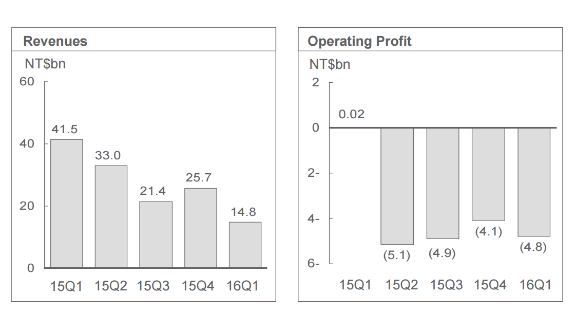 The Taiwanese smartphone maker has released its Q1 2016 figures today, covering from January to March. The streak of declining quarters continues, with a drop in both revenue and profit compared to Q1 2015. The company reported revenue of NT$14.8 billion (around $45.6 million USD), which is down a massive 64% over the NT$41.5 billion (around $127 million USD) reported this time last year. After tax, the company was left with a quarterly net loss of NT$2.6 billion (around $65 million USD).