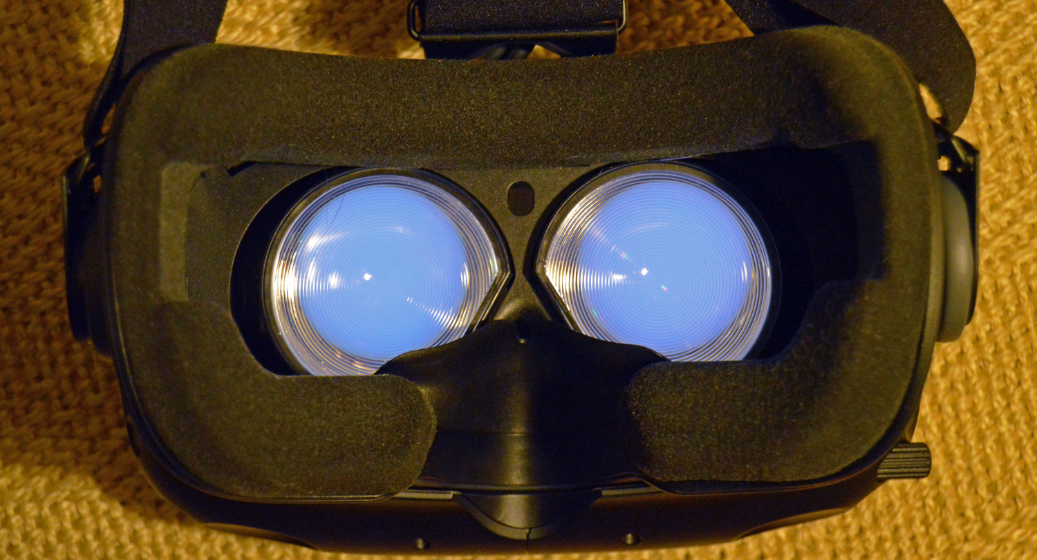 The Vive uses fresnel lenses with pronounced concentric circles that make up the different layers of the lens. These layers allow the light to focus toward the center and act as magnifiers for the image. Fresnel lenses allow the Vive to have a wider ‘sweet spot’ on the lens where the image is focused, but also have the drawback of being visible in certain situations – such as a white mountain against a blue sky in Everest.