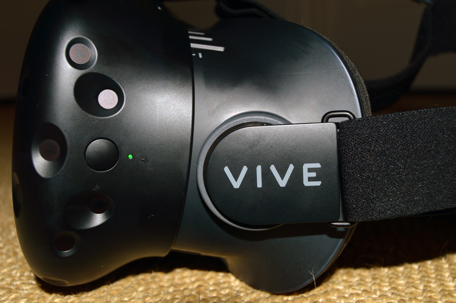 Core to getting the best experience with the Vive is making sure the fit is right. The first time you put on the headset, you should give yourself some slack on the straps, and adjust the fit from on your face. You should tighten the sides as much as possible without feeling like the headset is squeezing your face (this is how you end up with ‘VR face’). The triangular back of the head strap should rest on the crown of your head flat and the top strap should be tightened enough to lift the the device up slightly, relieving some of the front heaviness. Once the straps are properly adjusted, shift the device slightly around on your face to get the clearest image.