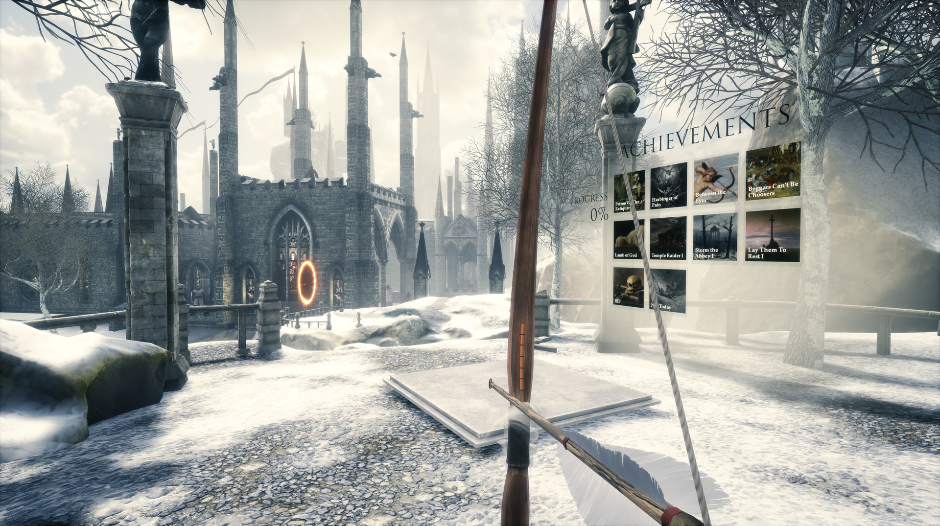 In Death is really something special. If this game were not in VR it’d be an entirely unremarkable and boring bow and arrow shooter with light procedural elements, but since it takes place inside of VR, it’s dramatically enhanced. The premise is simple: the kingdom of Heaven is overrun and in ruins and it’s up to you, an angelic bow and arrow being, to swoop in and clear out the tainted medieval castles to restore balance.