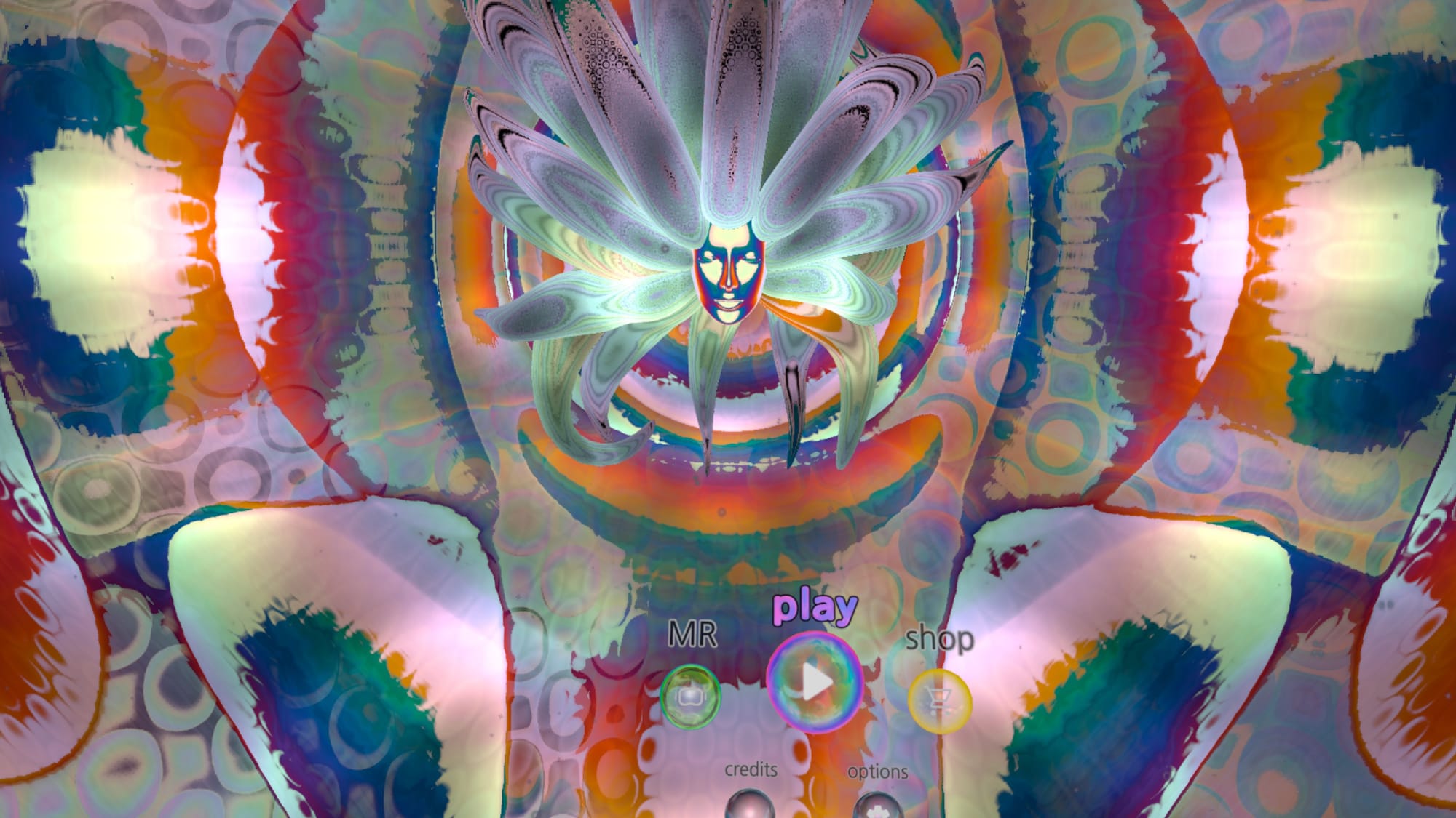 The visual identity of Squingle Arcade is unique, leaning into a psychedelic, vibrant, and almost hypnotic aesthetic. When played in mixed reality, the world around you is rendered in saturated and color-shifted hues, and the walls of your living space can be altered in real-time by the game, while in VR, you'll race through puzzles in a dynamic, ever-shifting iridescent universe.