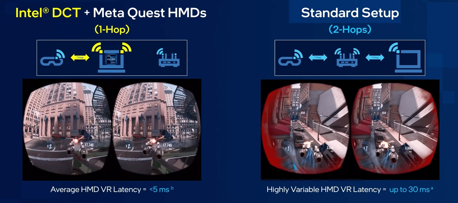 Intel claims that the connection not having to go via a router reduces latency by “up to 20%”, but Virtual Desktop developer Guy Godin disputes this claim.