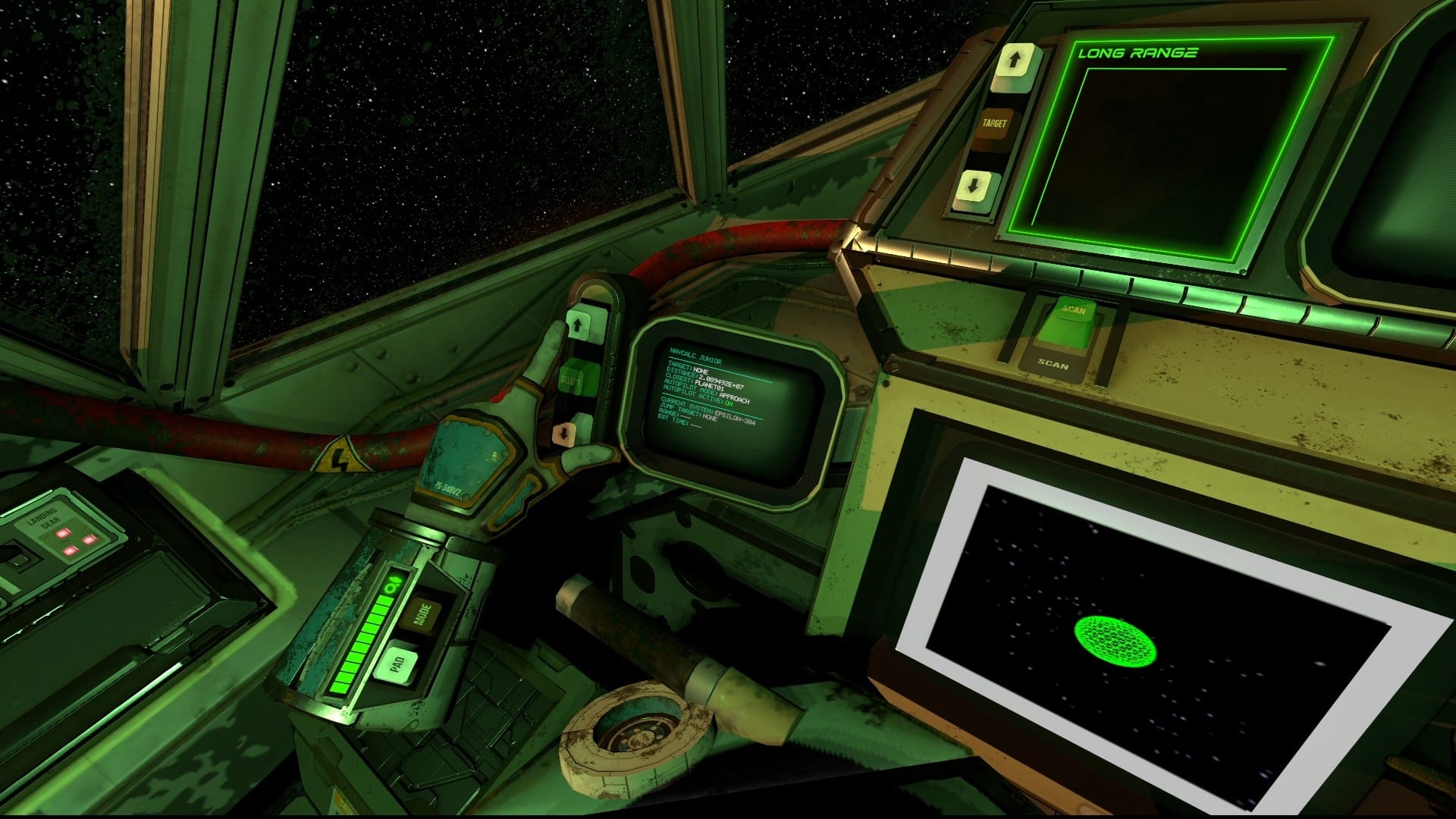 This revelation negates the need to constantly pick up and switch controllers. Playing this way actually increases my immersion because it feels so seamless and natural to take my hands off the throttle and stick, then reach forward to interact with the cockpit's dashboard. This method isn’t perfect by any means, but it shows how amazing it could feel to have native hand tracking built into the game, so I implore First Time Games to consider this as a potential next step in the evolution of Inter Solar 83's controls.